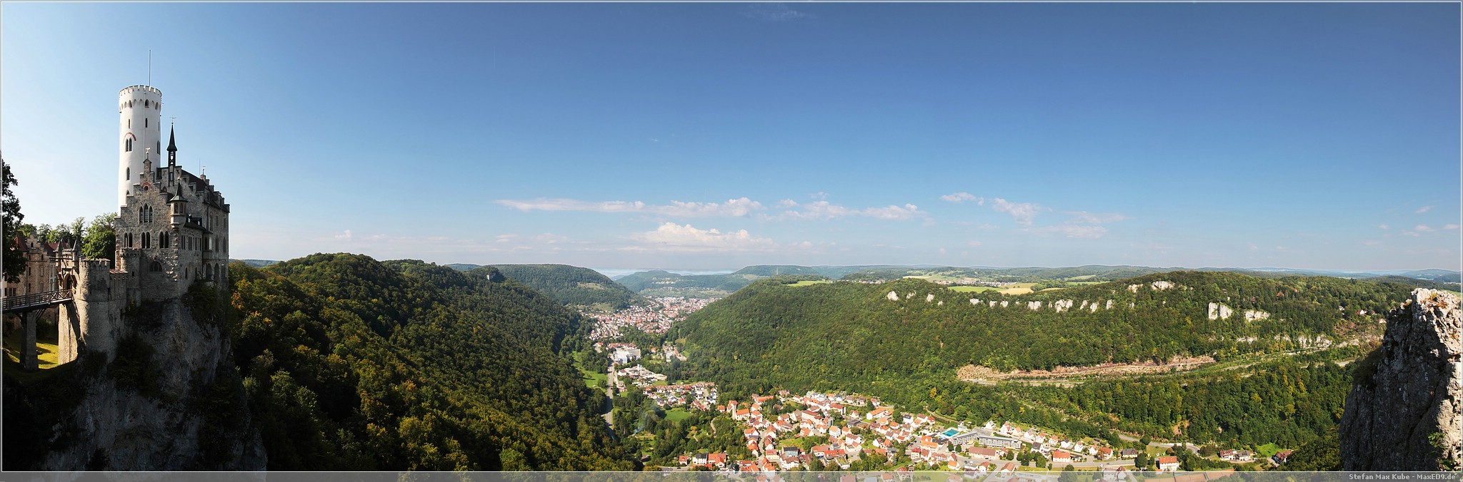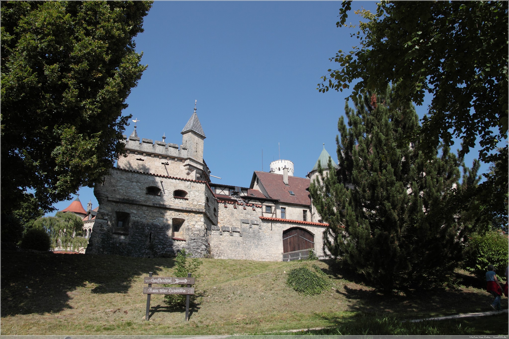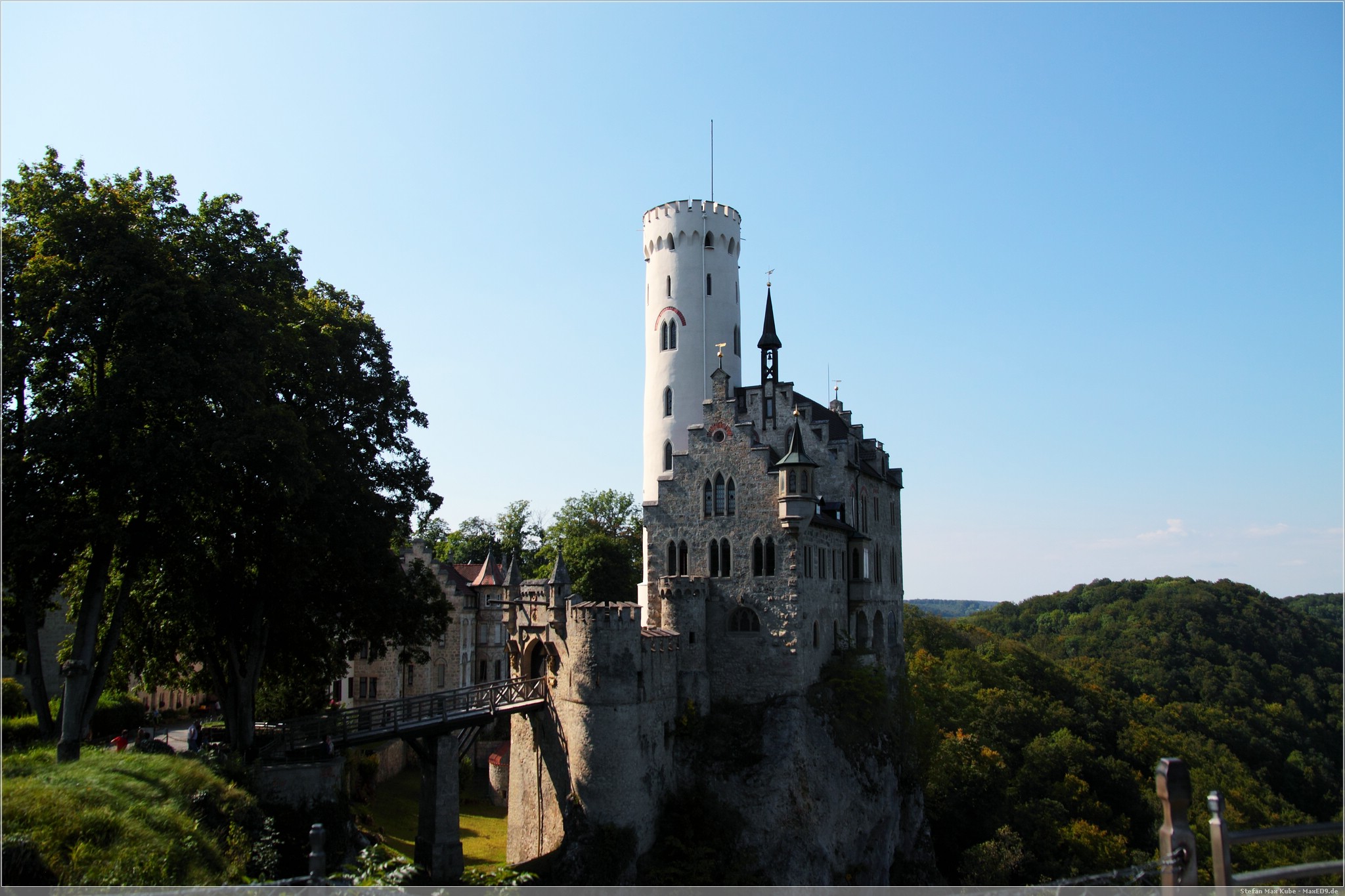 Weiter auf Landstraßen ging es durch Engen, Sigmaringen bis zum Schloss Lichtenstein[1]. Da dies quasi auf dem Weg lag, wollten wir uns hier einfach mal kurz umschauen. Das auch als Märchenschloss Würrtembergs bezeichnete Schloss wurde im 19. Jahrhundert über dem Honau erbaut.In der Schwäbischen Alb auf ca 817m gelegen bietet es neben Einblicken auch eine schöne Aussicht.