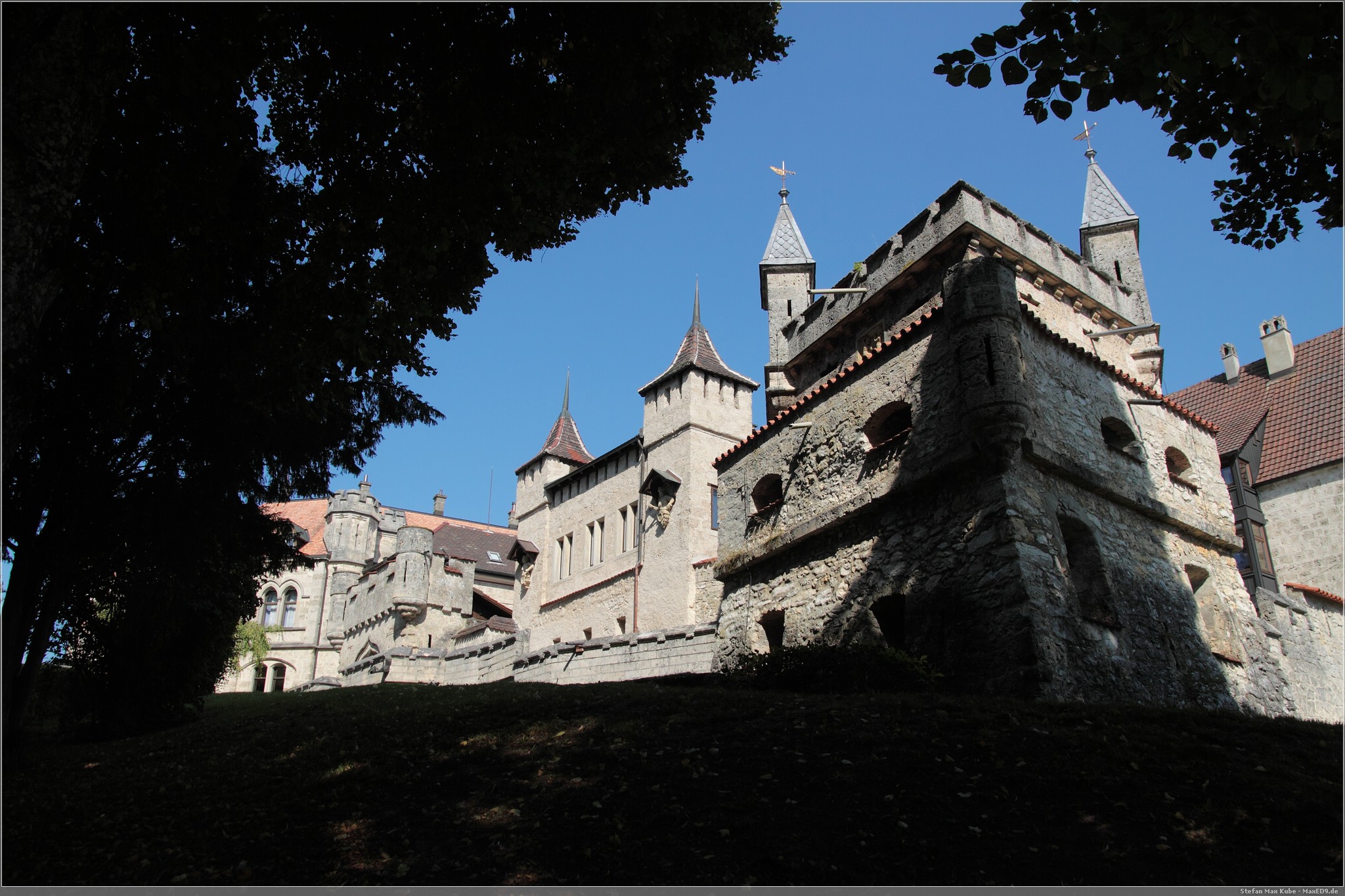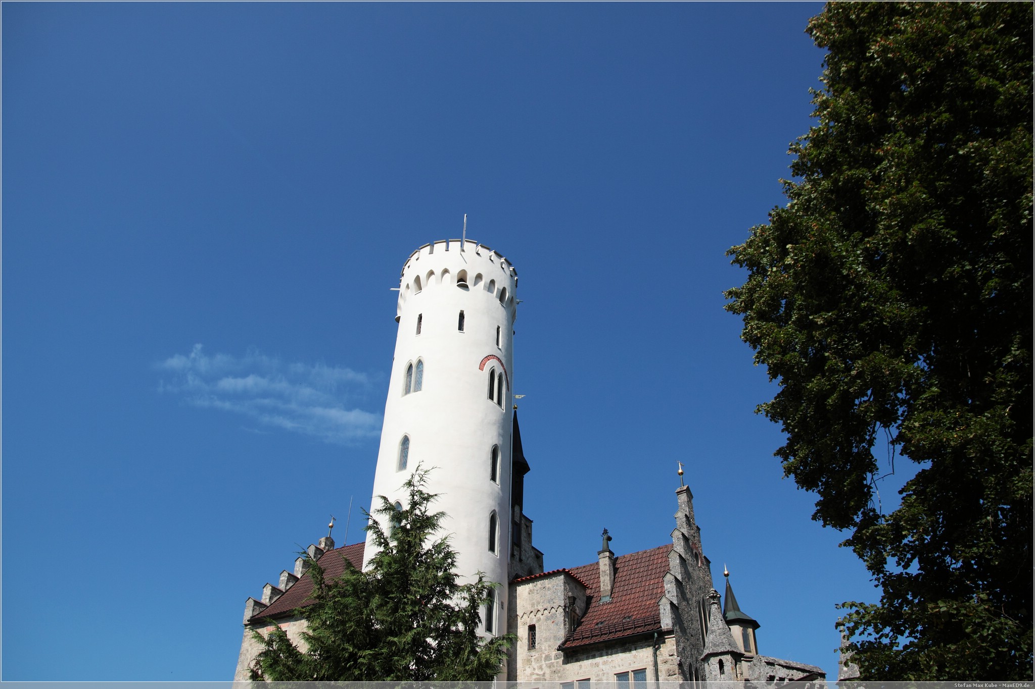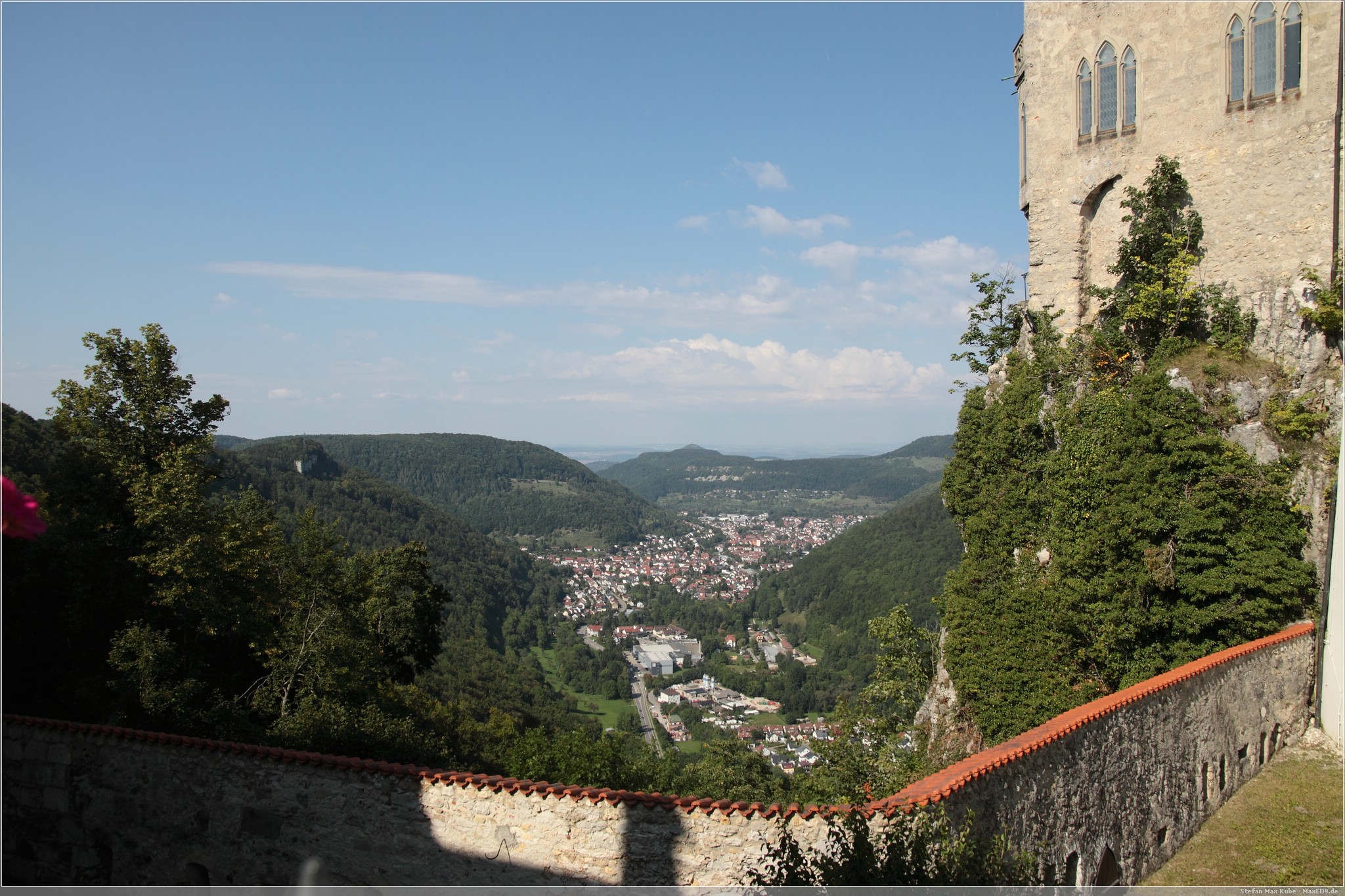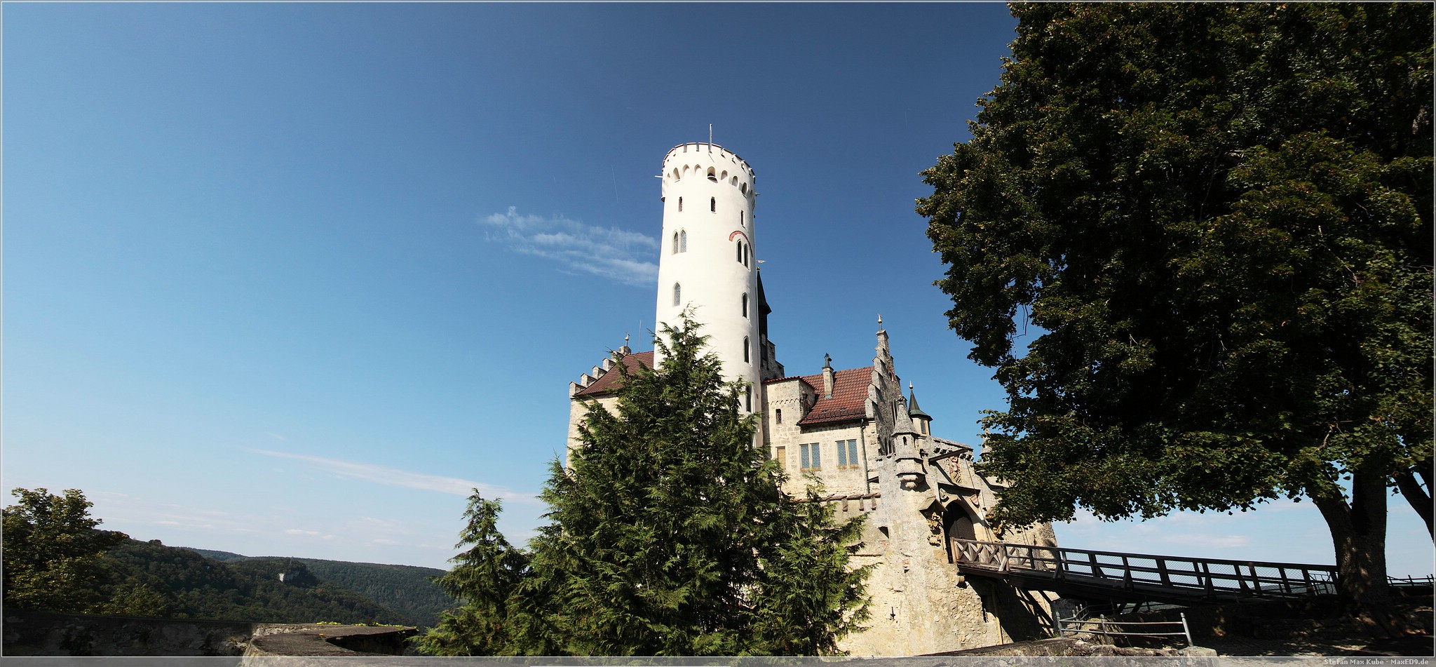 Weiter auf Landstraßen ging es durch Engen, Sigmaringen bis zum Schloss Lichtenstein[1]. Da dies quasi auf dem Weg lag, wollten wir uns hier einfach mal kurz umschauen. Das auch als Märchenschloss Würrtembergs bezeichnete Schloss wurde im 19. Jahrhundert über dem Honau erbaut.In der Schwäbischen Alb auf ca 817m gelegen bietet es neben Einblicken auch eine schöne Aussicht.