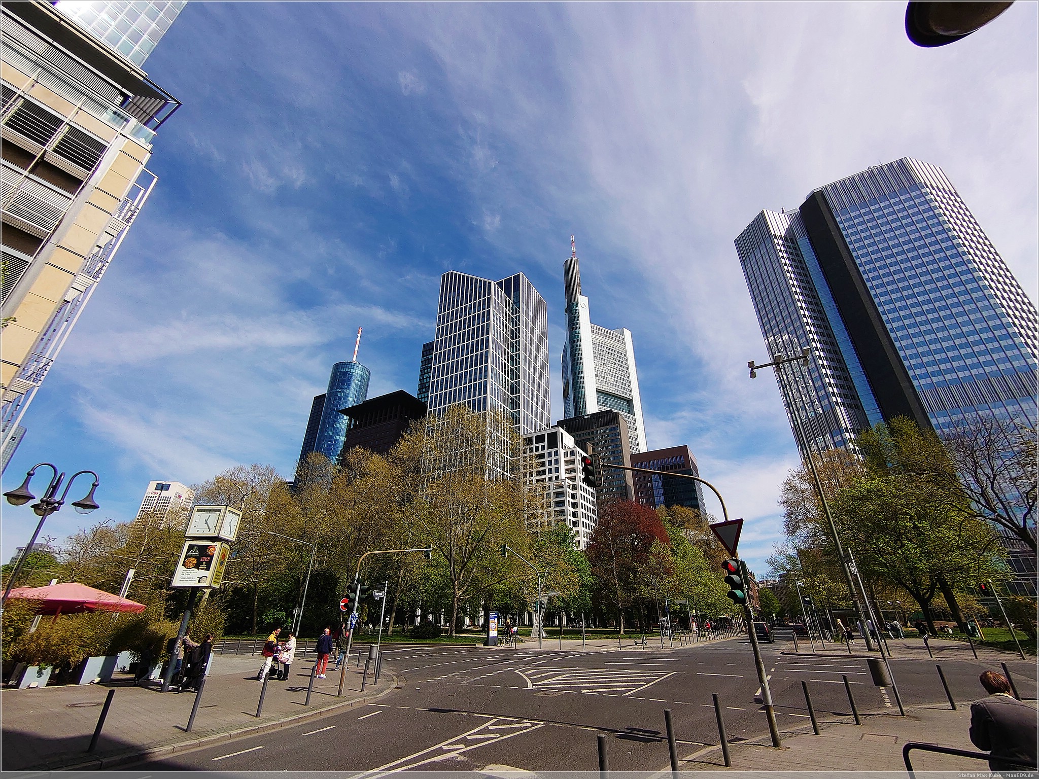 Vom Bahnhof liefen wir zunächst bis zur Gallusanlage, da Mama unbedingt mal zwischen den vielen Hochhäusern stehen wollte.