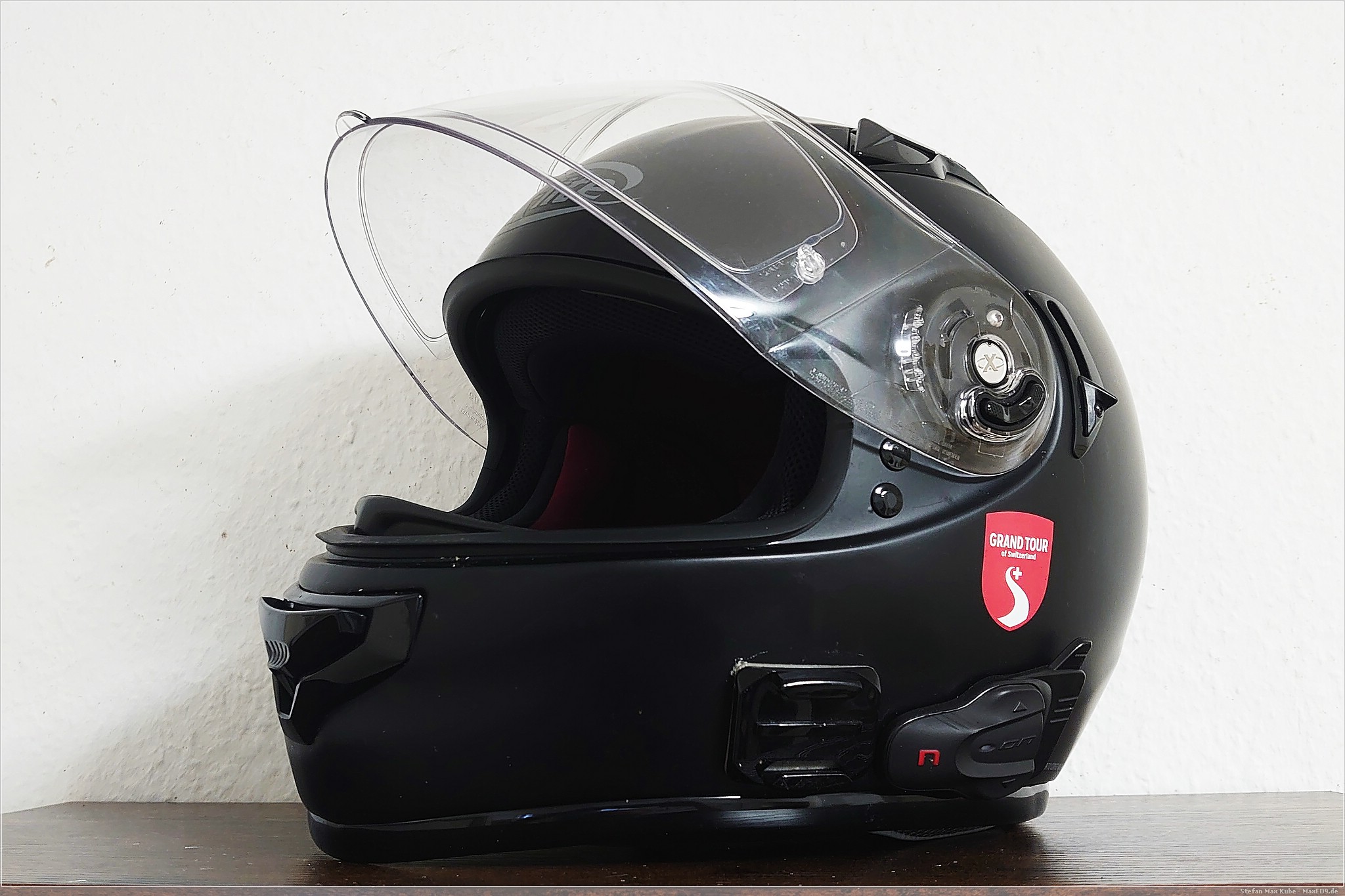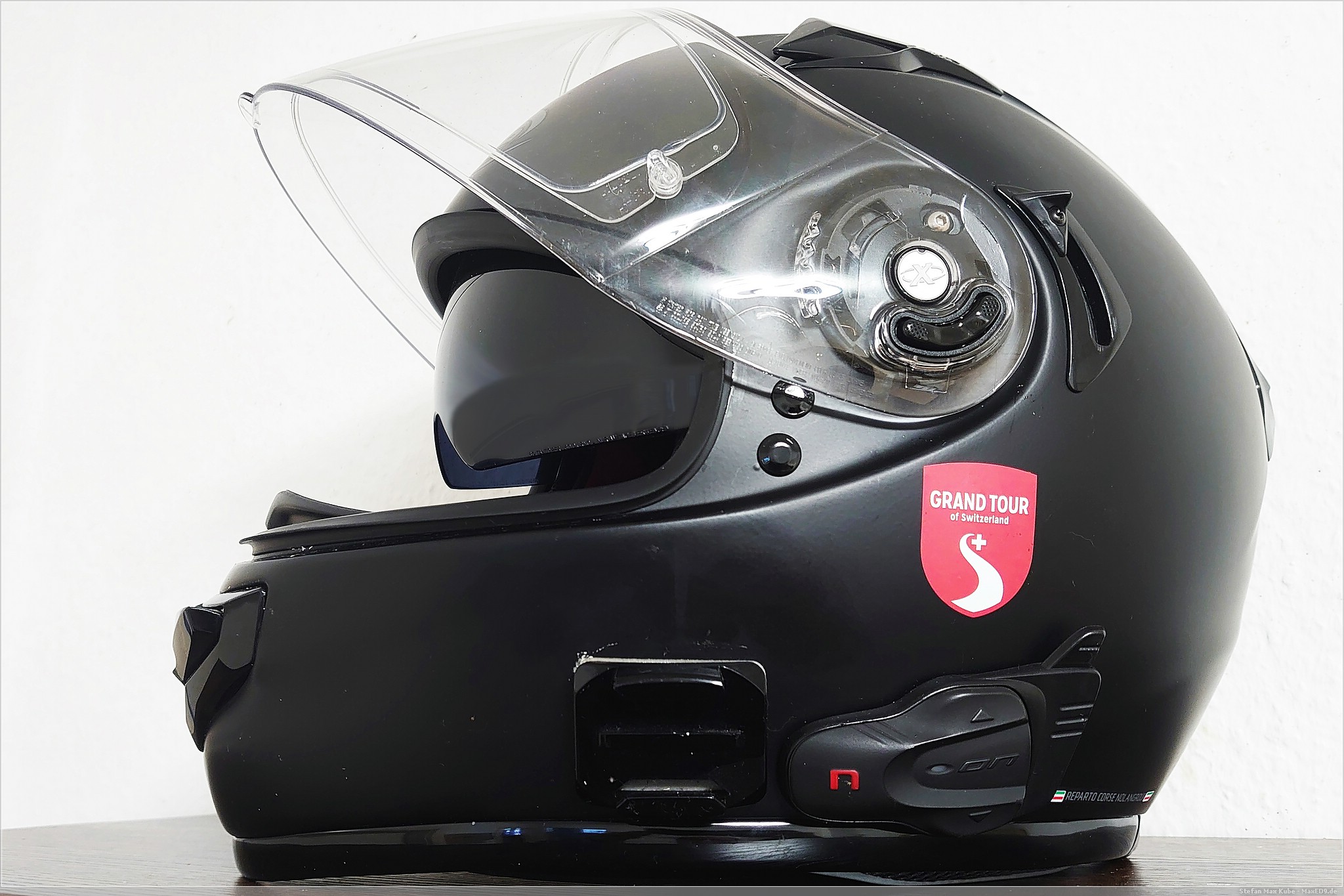Wie erwartet, passt der Hut sehr gut, eben wie damals der X-702. Das n-com war ebenfalls schnell eingebaut und 2 Grand Tour Klebchen angebracht