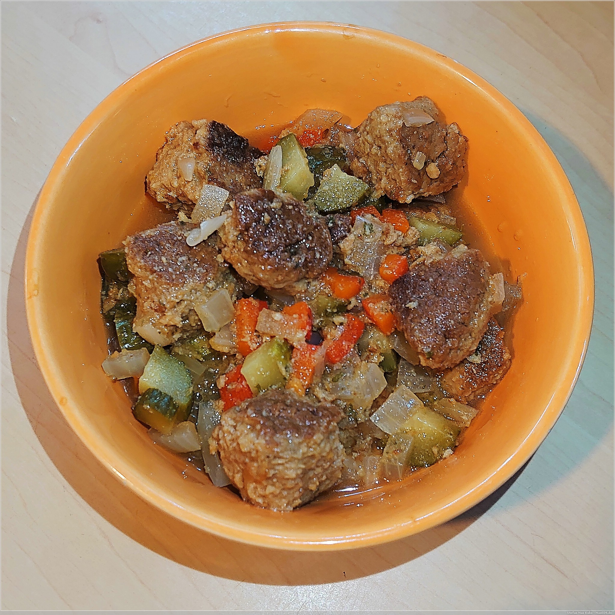 - 500g pflanzliches Hack (z.B. Meatless Farm, Vemondo, Beyond Meat oder aus Sojaschnetzel selbstgemischt, etc)
