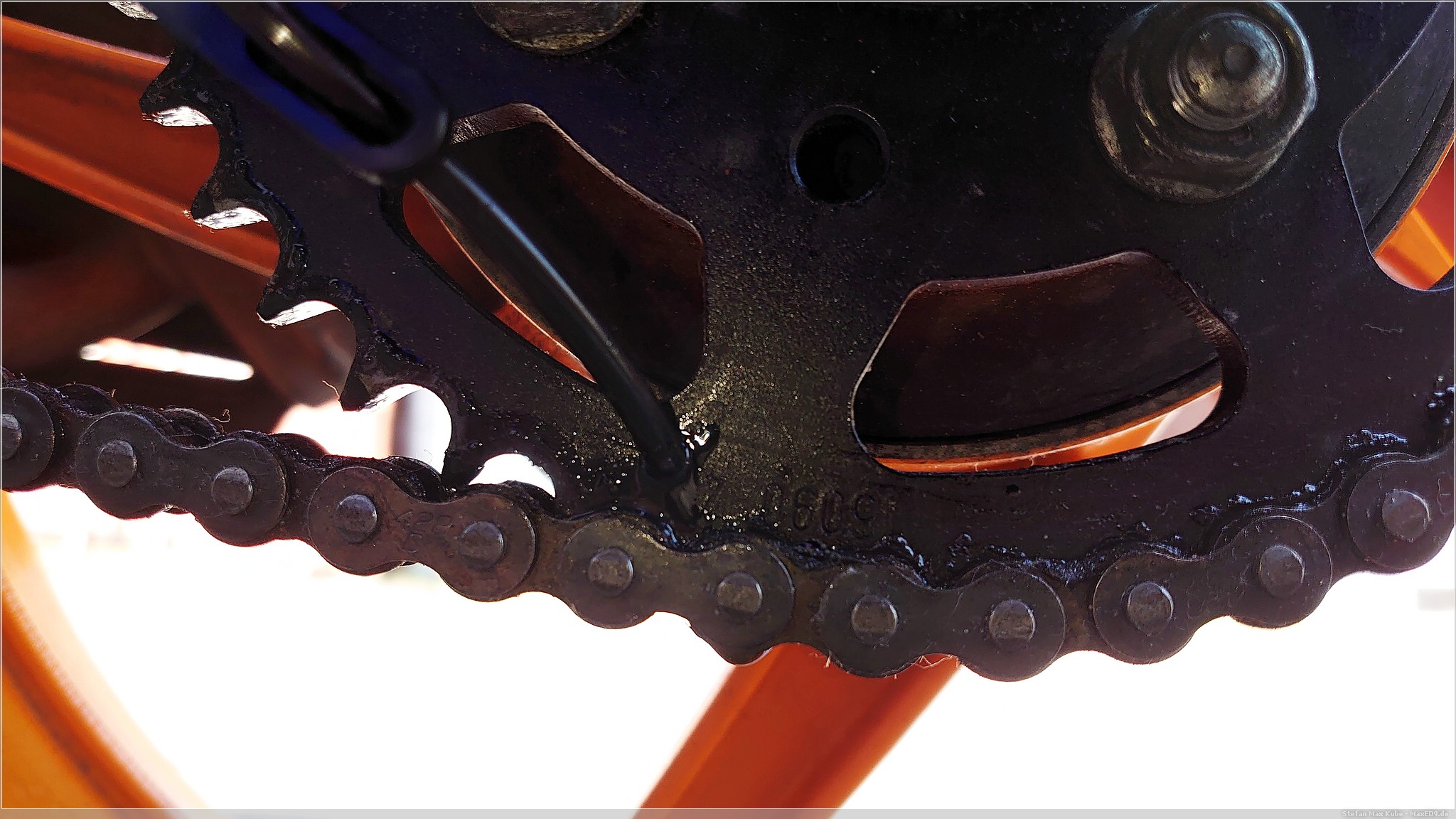 DIe Cobrra-Bauweise finde ich seltsam, weil ja Prinzipbedingt ungleichmäßig Öl auf die Kette kommt – wenn ich vergessen am Rad zu drehen mal gar nicht, dann potentiell auf einen Schlag recht viel.