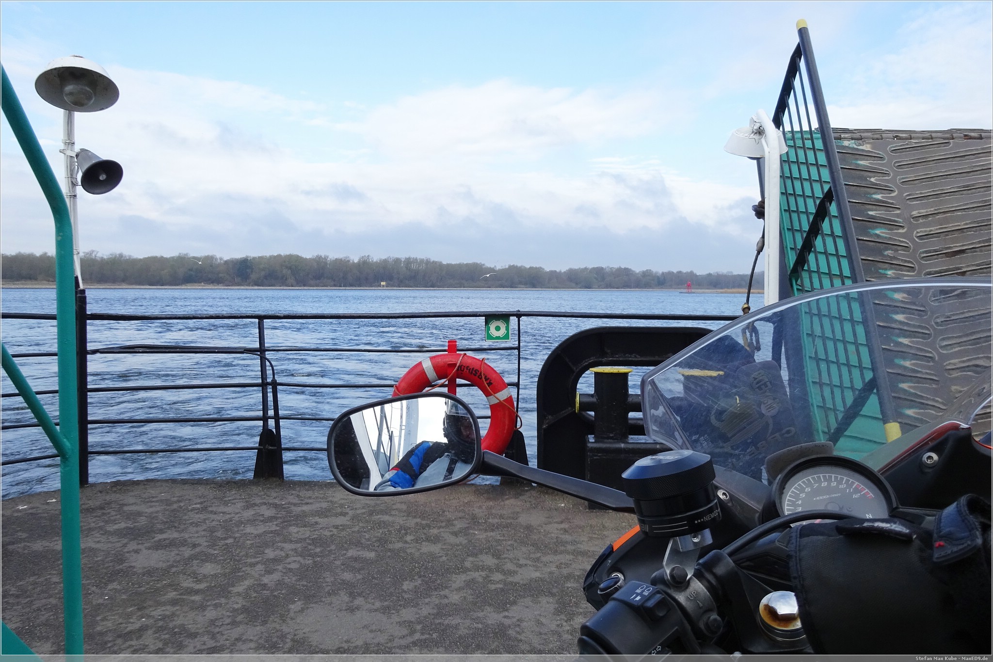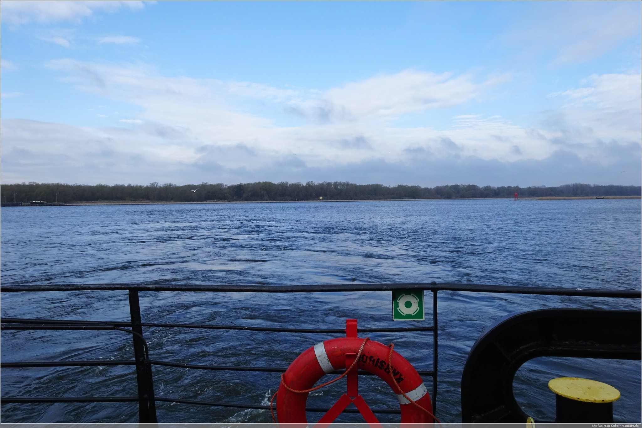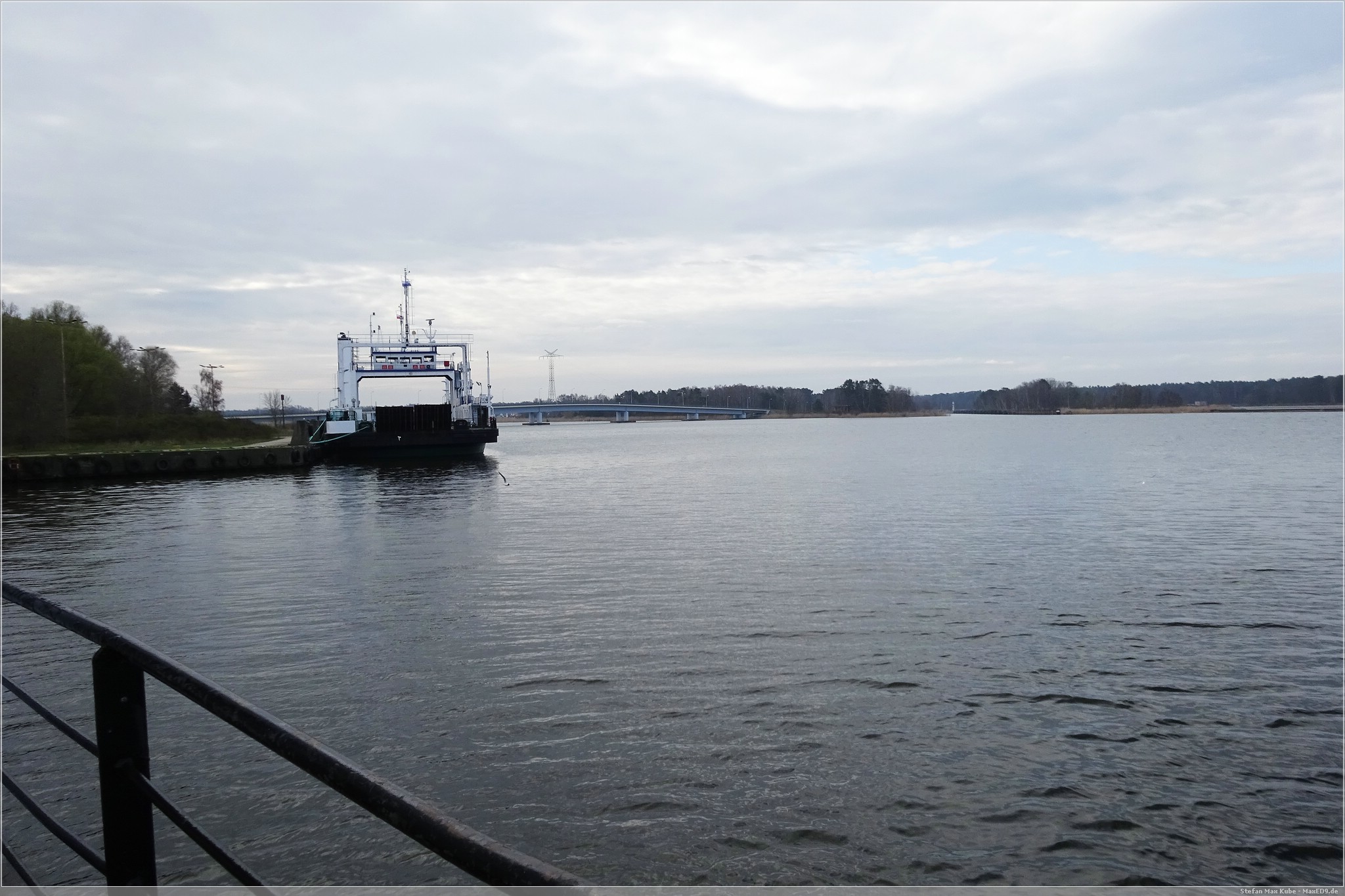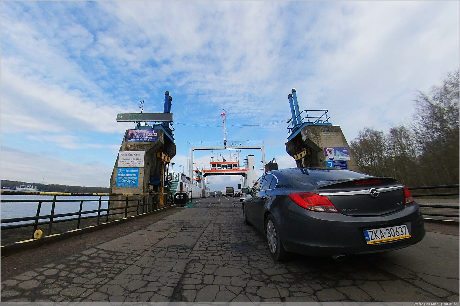 So fuhr ich aus Misdroy zunächst über die Schnellstraße 3 nach Oste wieder raus und dann weiter über die 93. Hier hieß es dann erstmal übersetzen mit der Fähre, im übrigen kostenlos, mangels Brücken. Die Schlange war nicht lang und ich wartete rund 5 Minuten, bis es auf die Fähre und dann über die Świna nach Usedom ging.