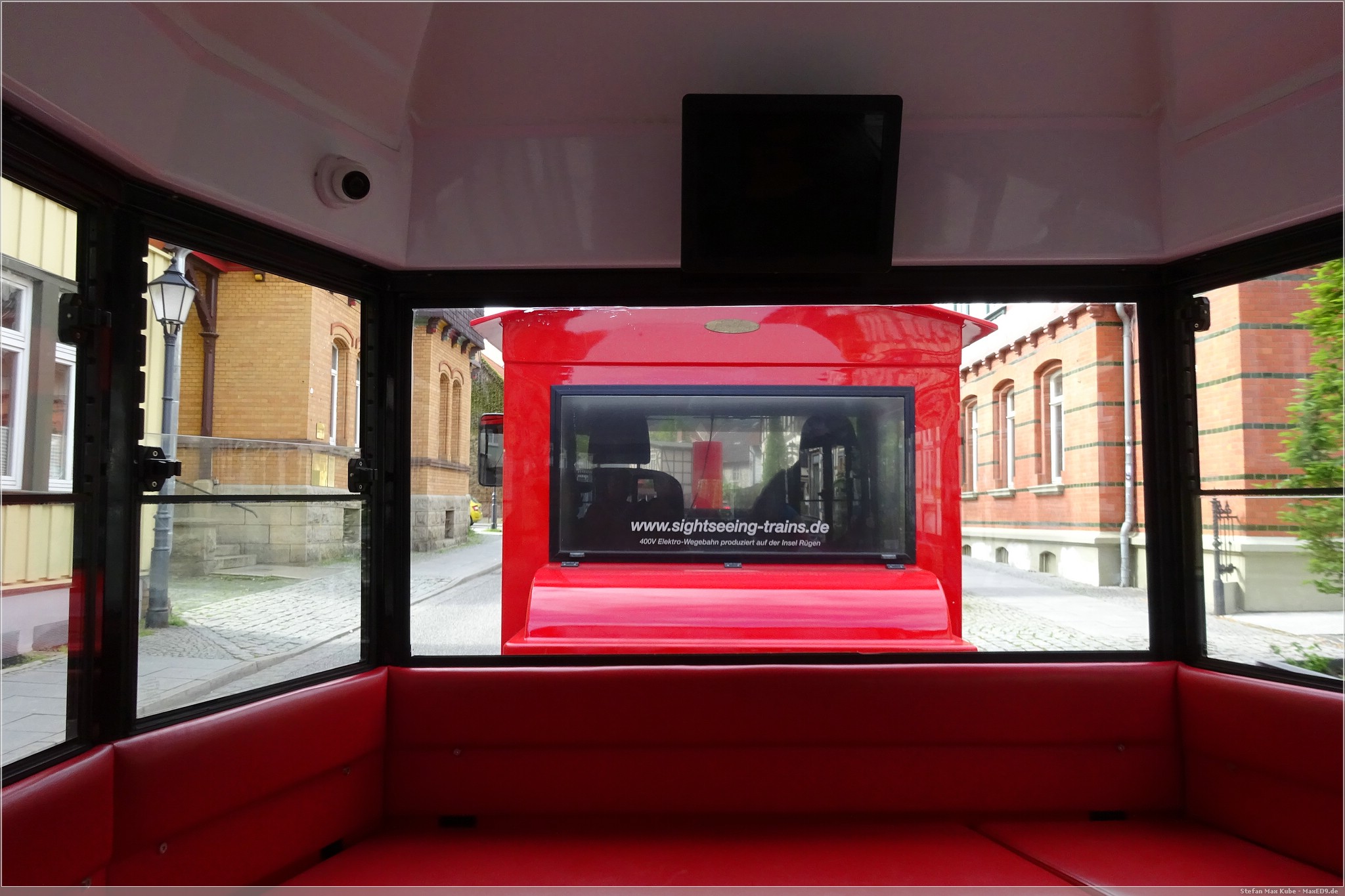So begaben wir uns zur Haltestelle unweit unseres Hotels, warteten nur kurz in der leichten Vormittagssonne, bis die Bahn leise surrend ankam. Schon ging die wilde Fahrt los durch Wernigerode und hinauf zum Schloss.