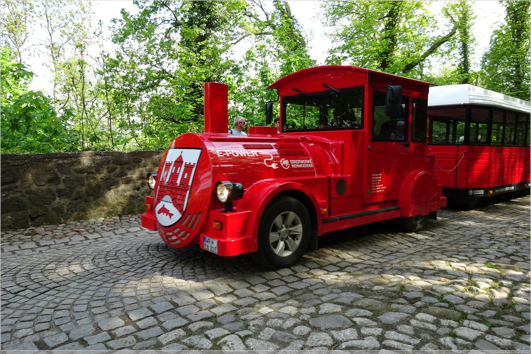 Nachdem wir die letzten zwei Tage immer hinauf zum Wernigeröder Schloss schauten, wollten wir selbstverständlich auch mal dorthin und runtersehen. Für eine Wanderung auf den Agnesberg ist Mutti nicht mehr so gut zu Fuß,,aber glücklicherweise gibt es ja die Schlossbahn, welche einen elektrisch zum Schloss bringt.