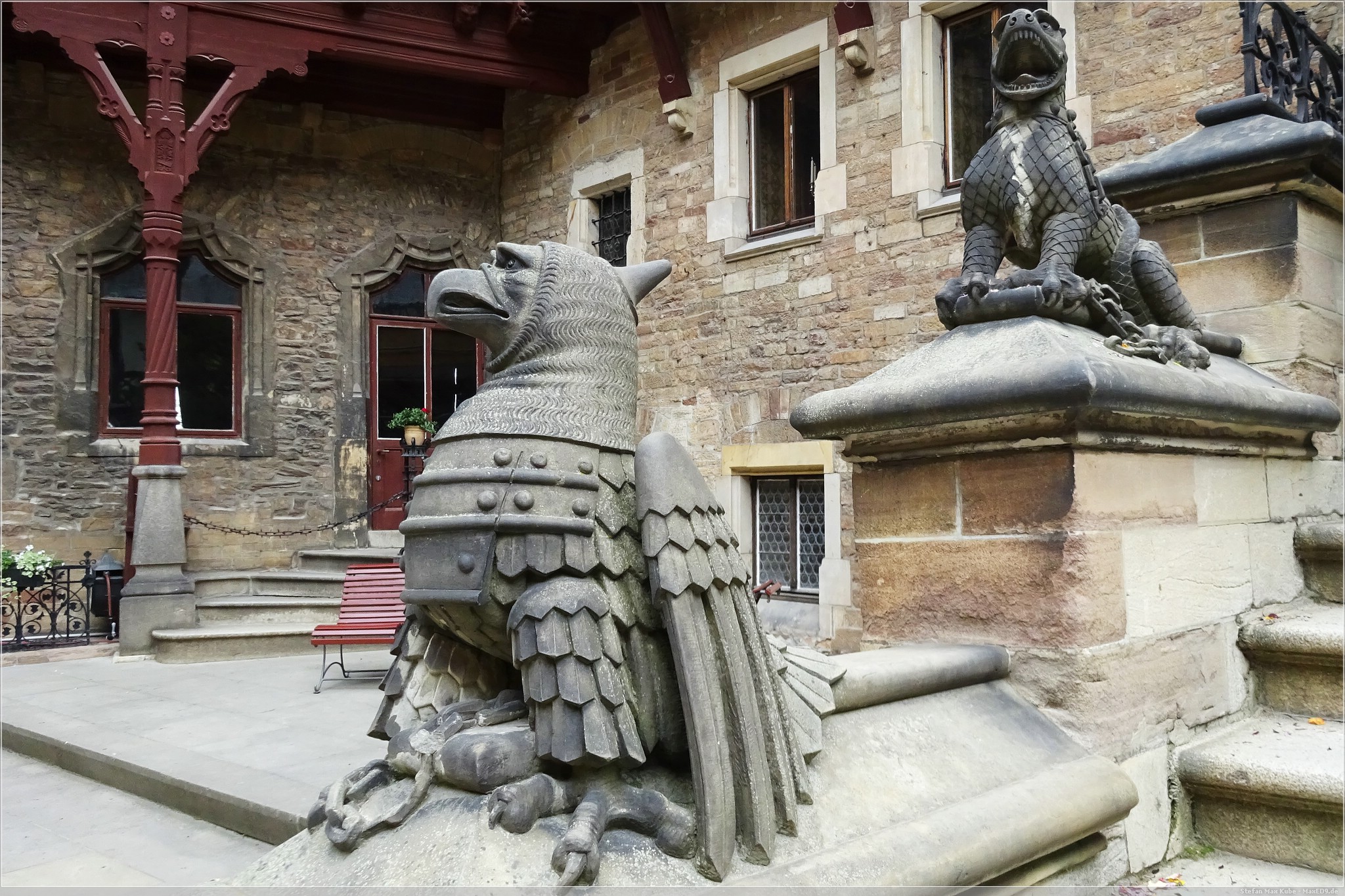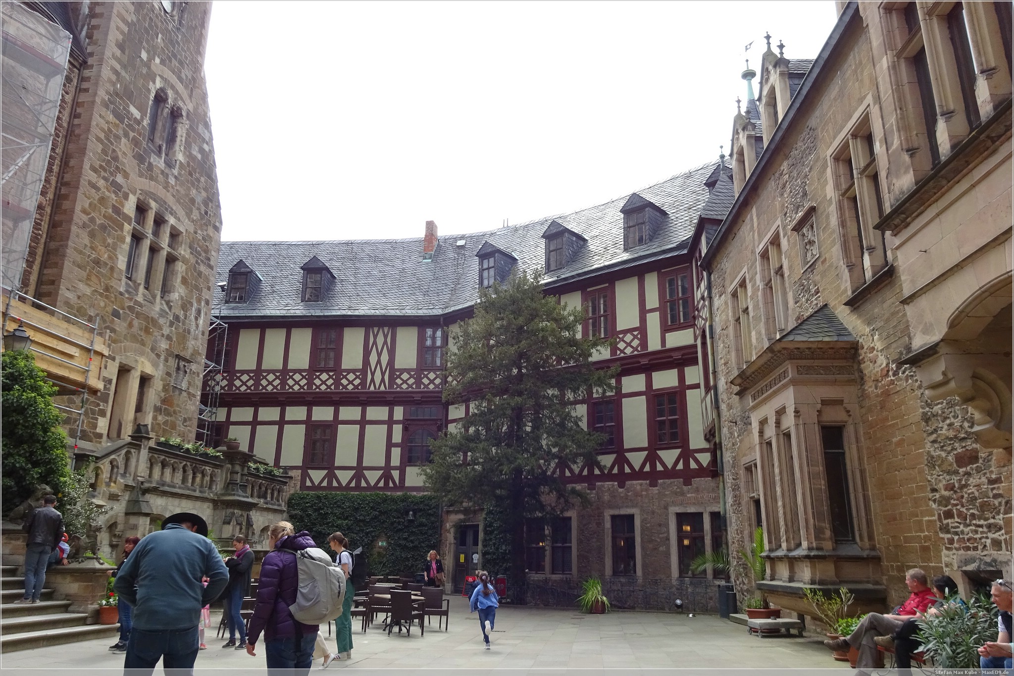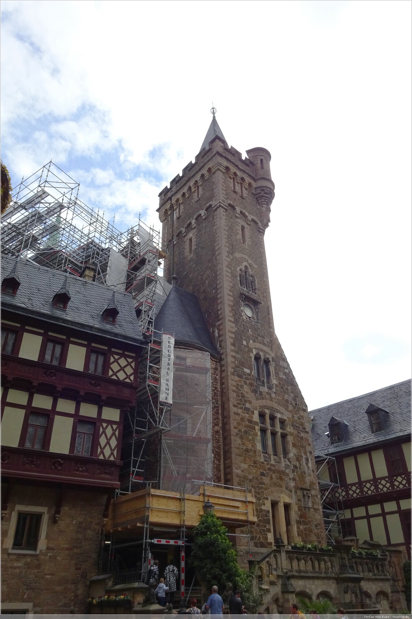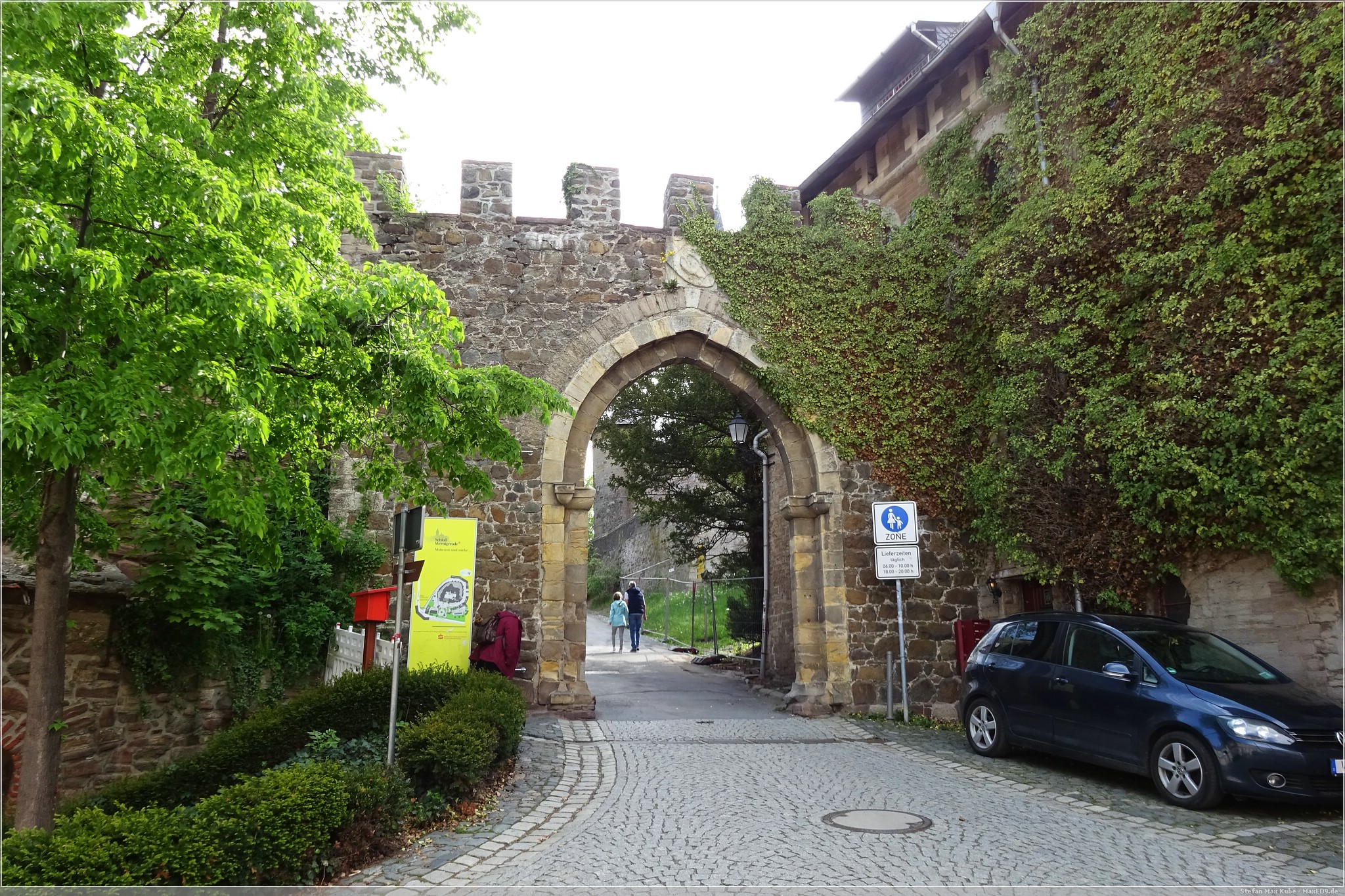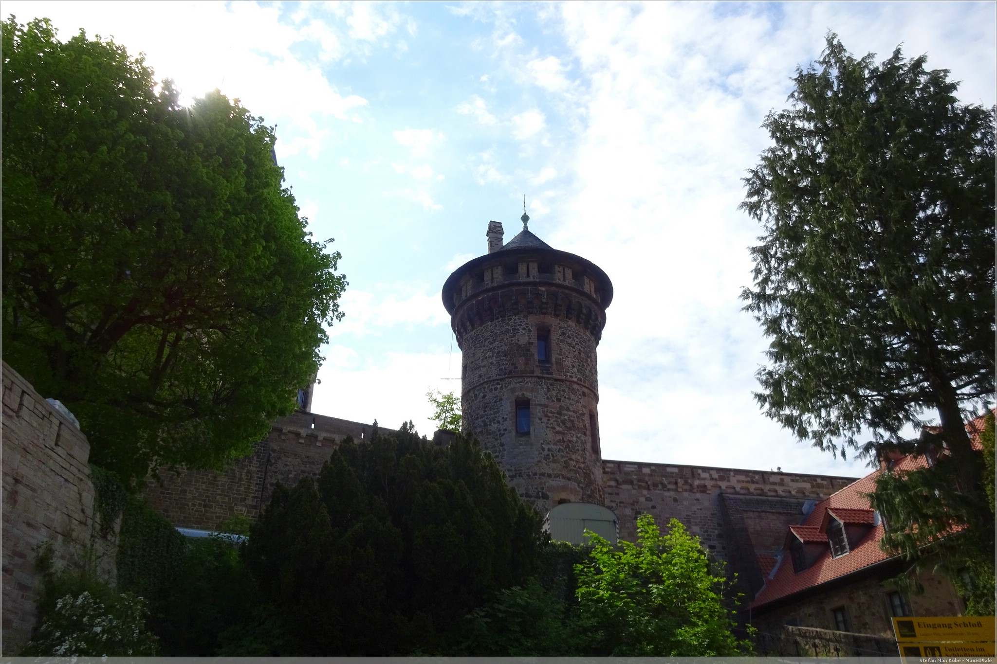 Durch das Hauptor betraten wir die Burganlage und hier ging es dann steil hinauf vorbei an Fachwerkhäusern bis zum Haupteingang des Schlosses, Über die Mauern genossen wir den Ausblick in die Umgebung. Sie gab einen tollen Blick über Wernigerode frei, zum Brocken und zur Zwölfmorgentalschanze.