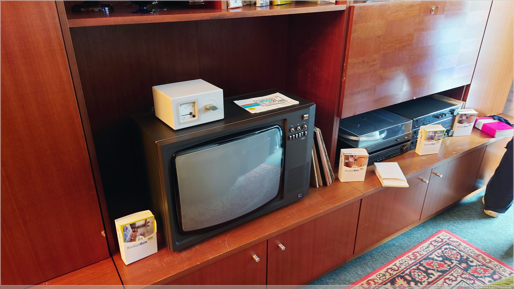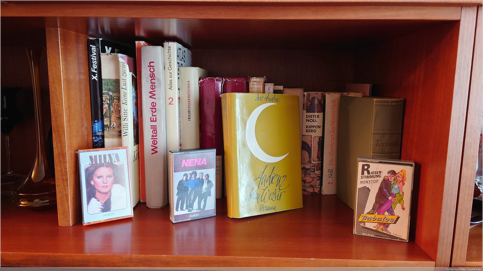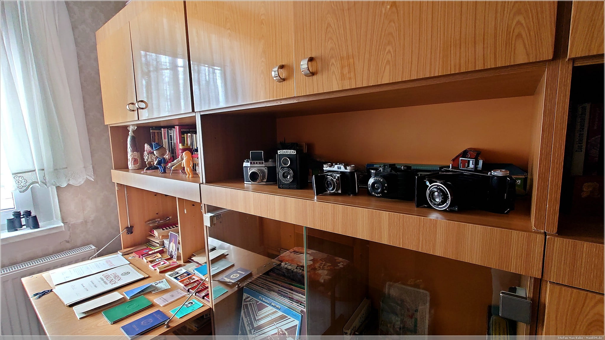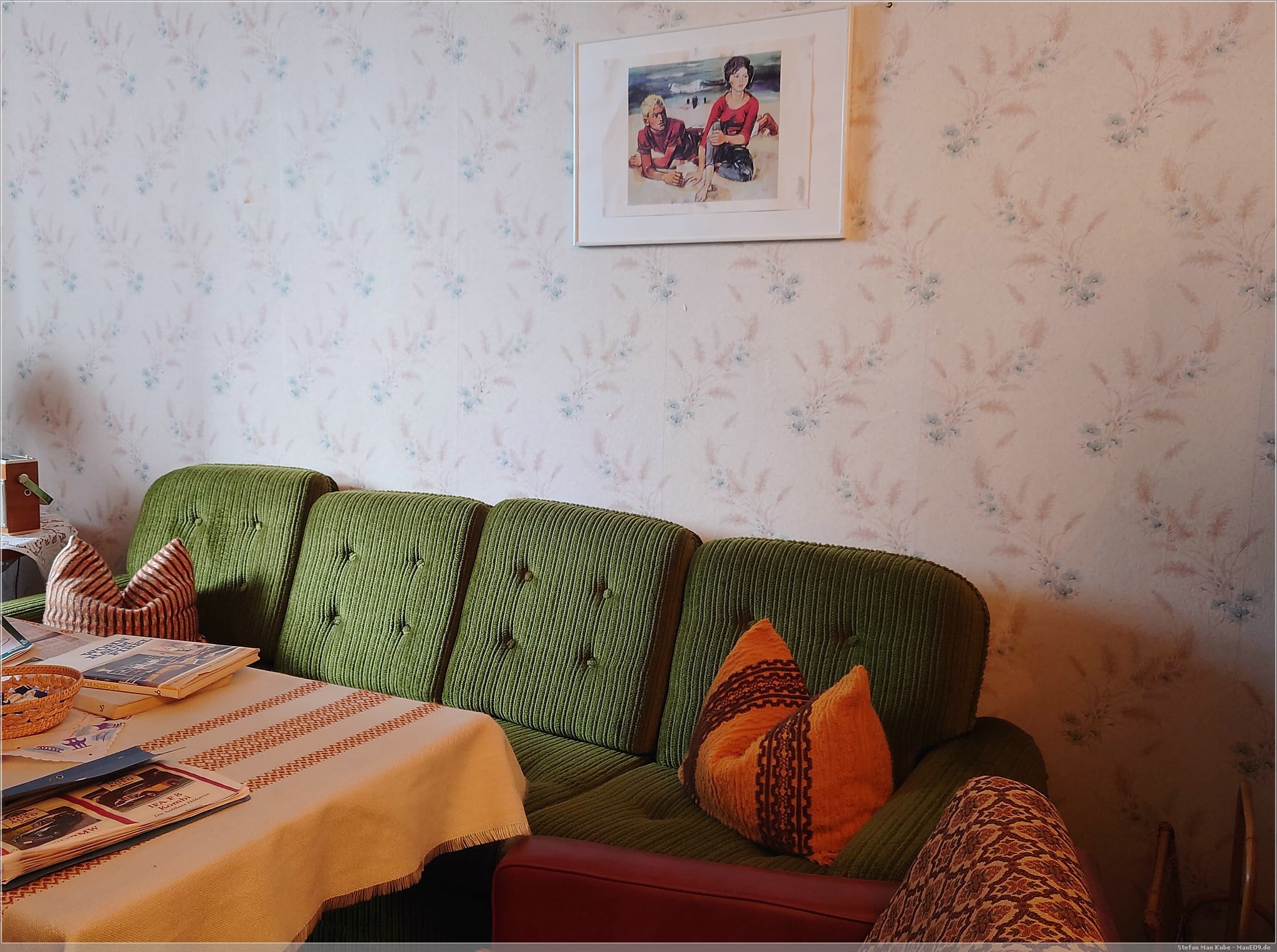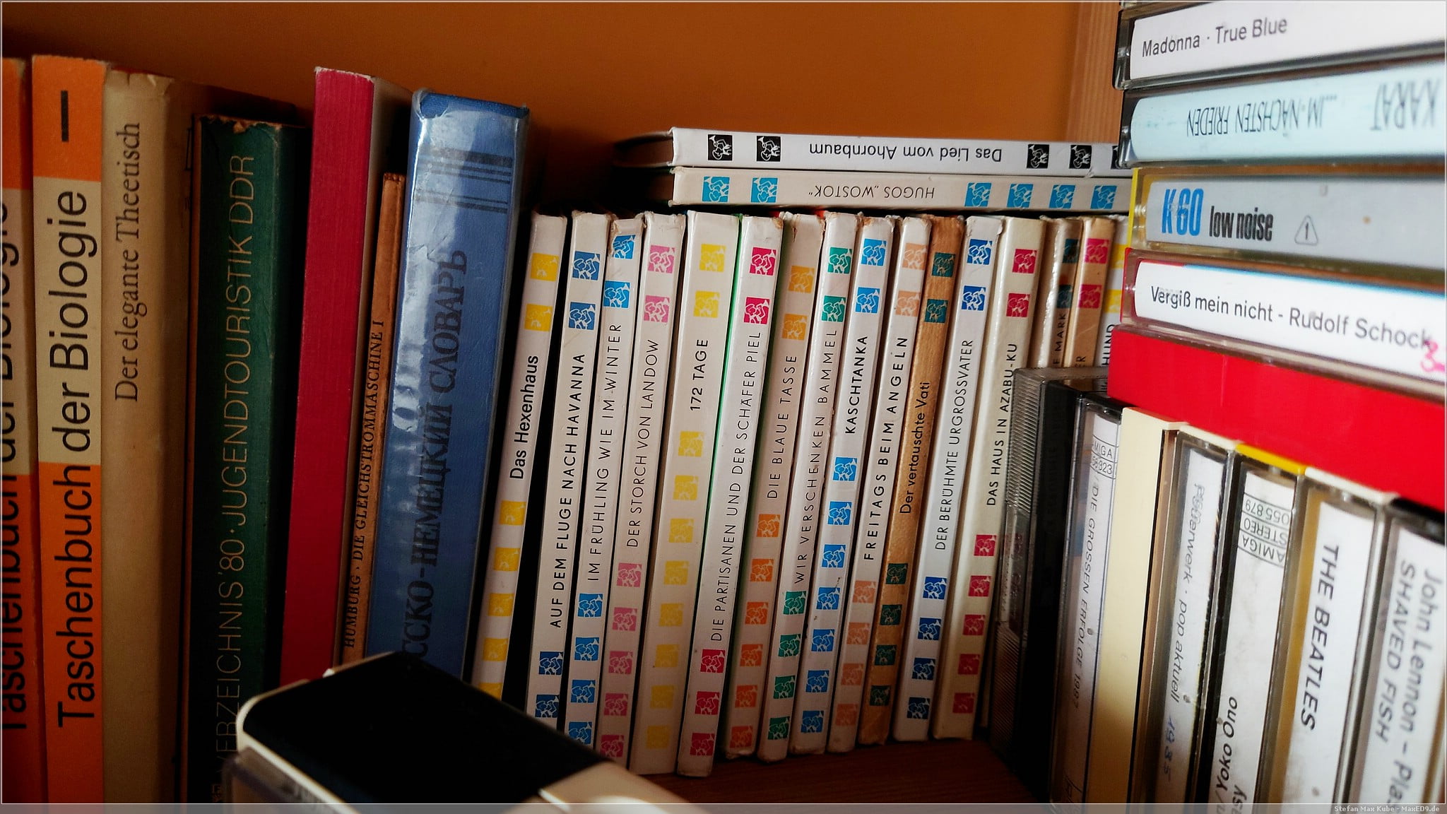 Anfassen ist hier überall ausdrücklich erlaubt, man darf in die Schränke schauen, sich überall hinsetzen und auch in den Büchern stöbern. Alle Teile sind originalgetreu, vom Lichtschalter bis zum Fussboden und stammen überwiegend aus Schenkungen. Im Jahr 1986 betrug die Miete solch einer sehr beliebten Wohnung 109 Mark, bei einem durchschnittlichen Nettoeinkommen von 969 Mark.