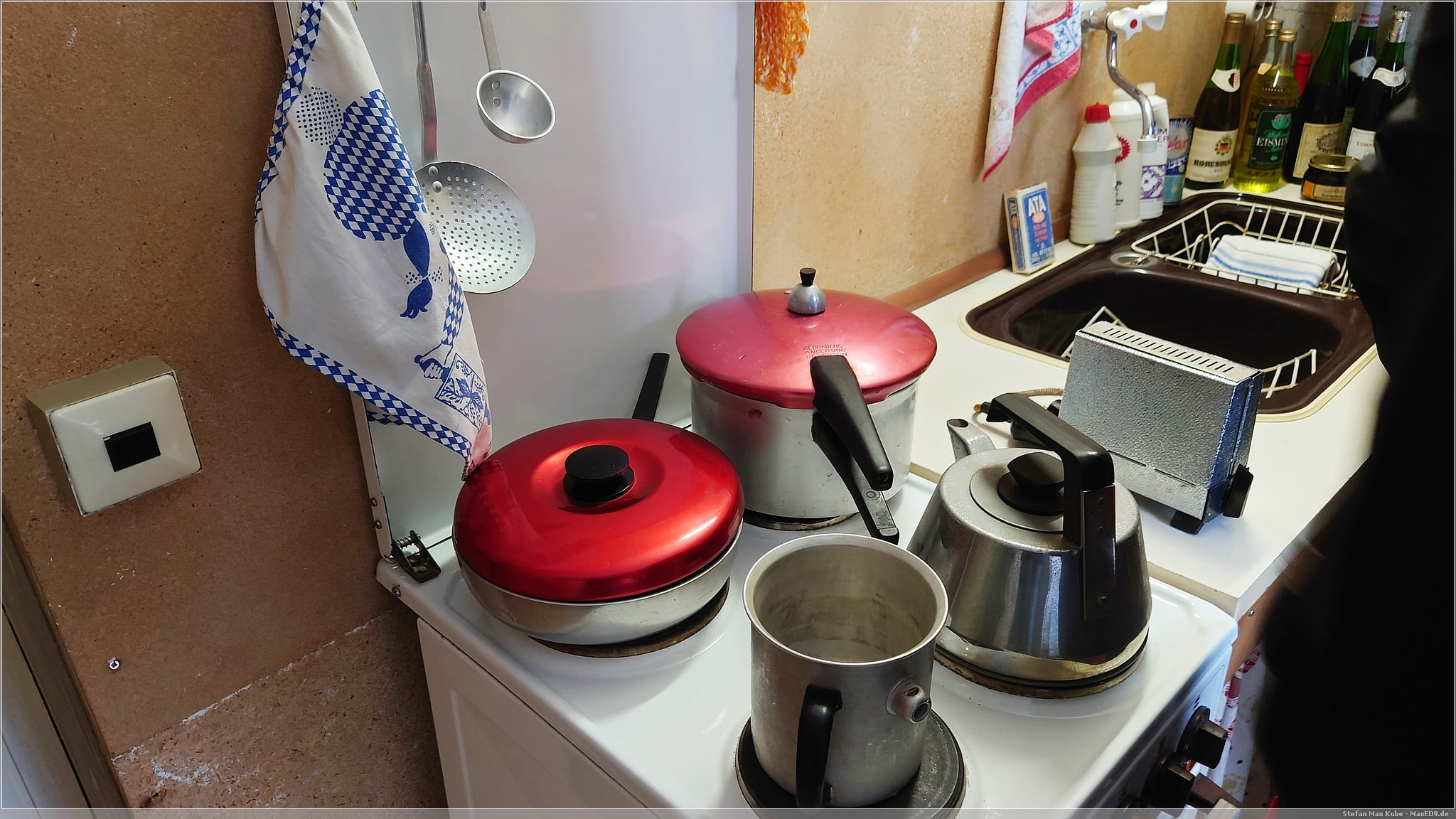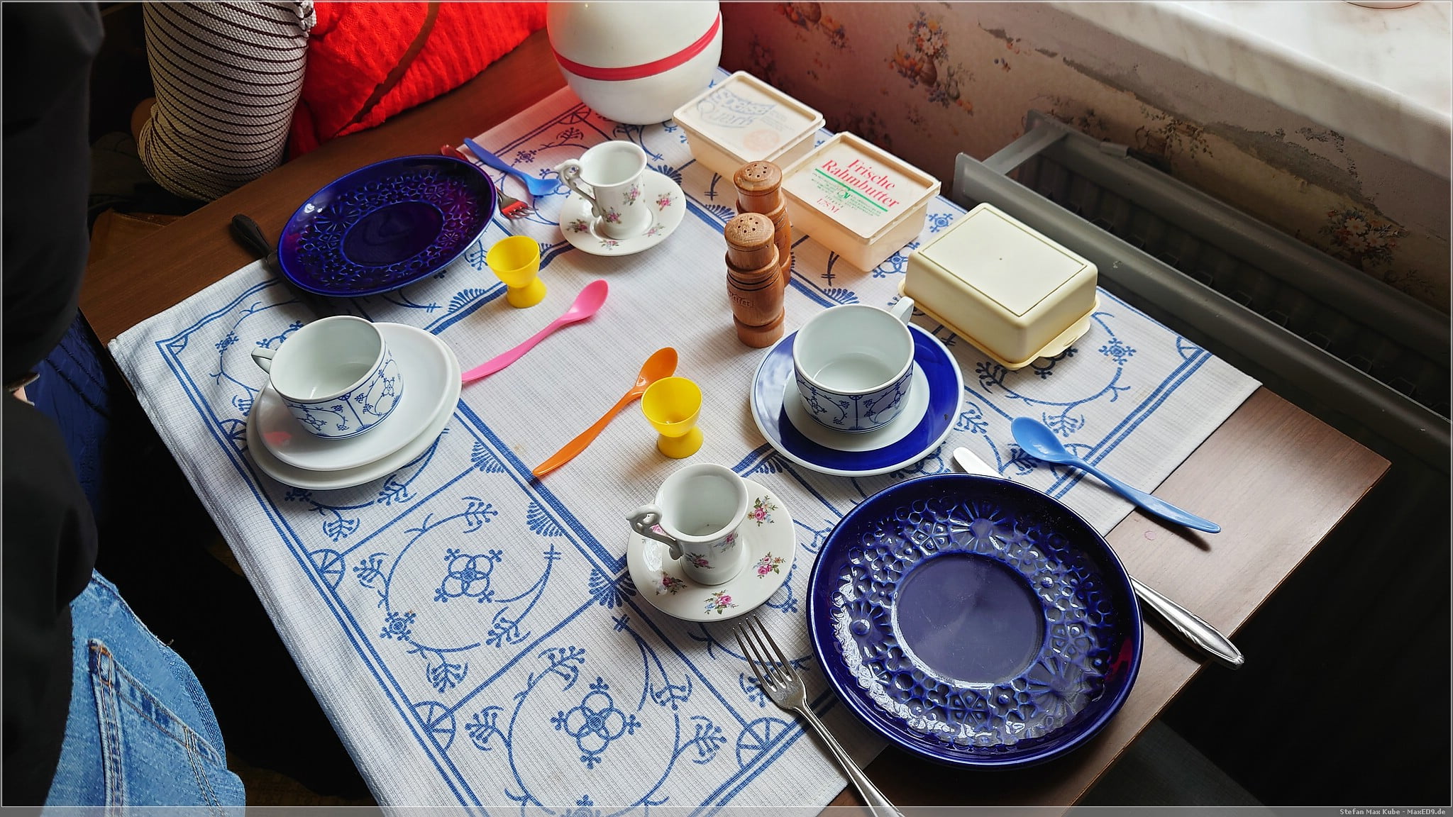 Selbstverständlich ist das Schlafzimmer aufgeräumt, wenn Besuch bekommt und in der Küche ist auch schon gedeckt und jede Menge los.