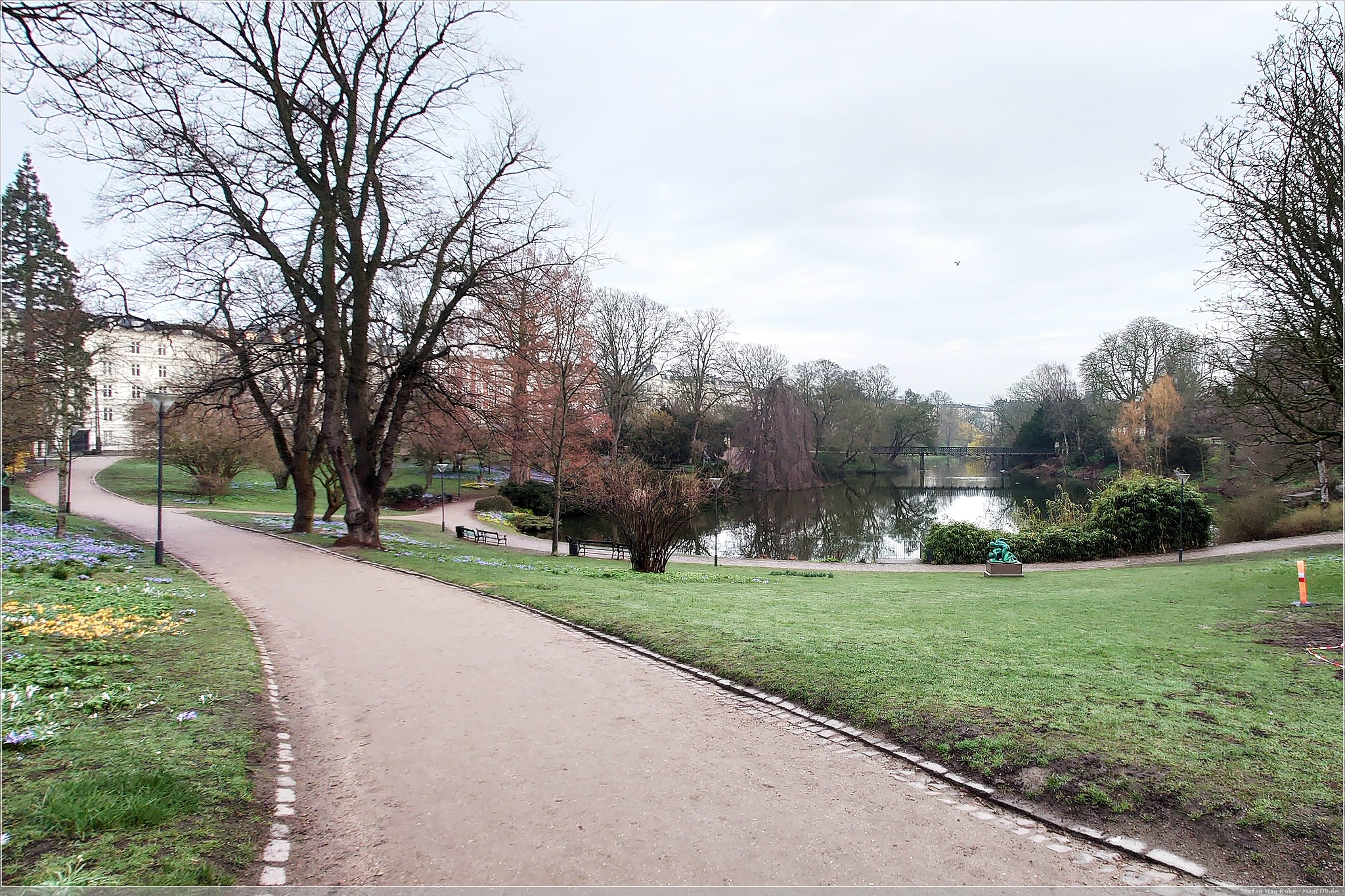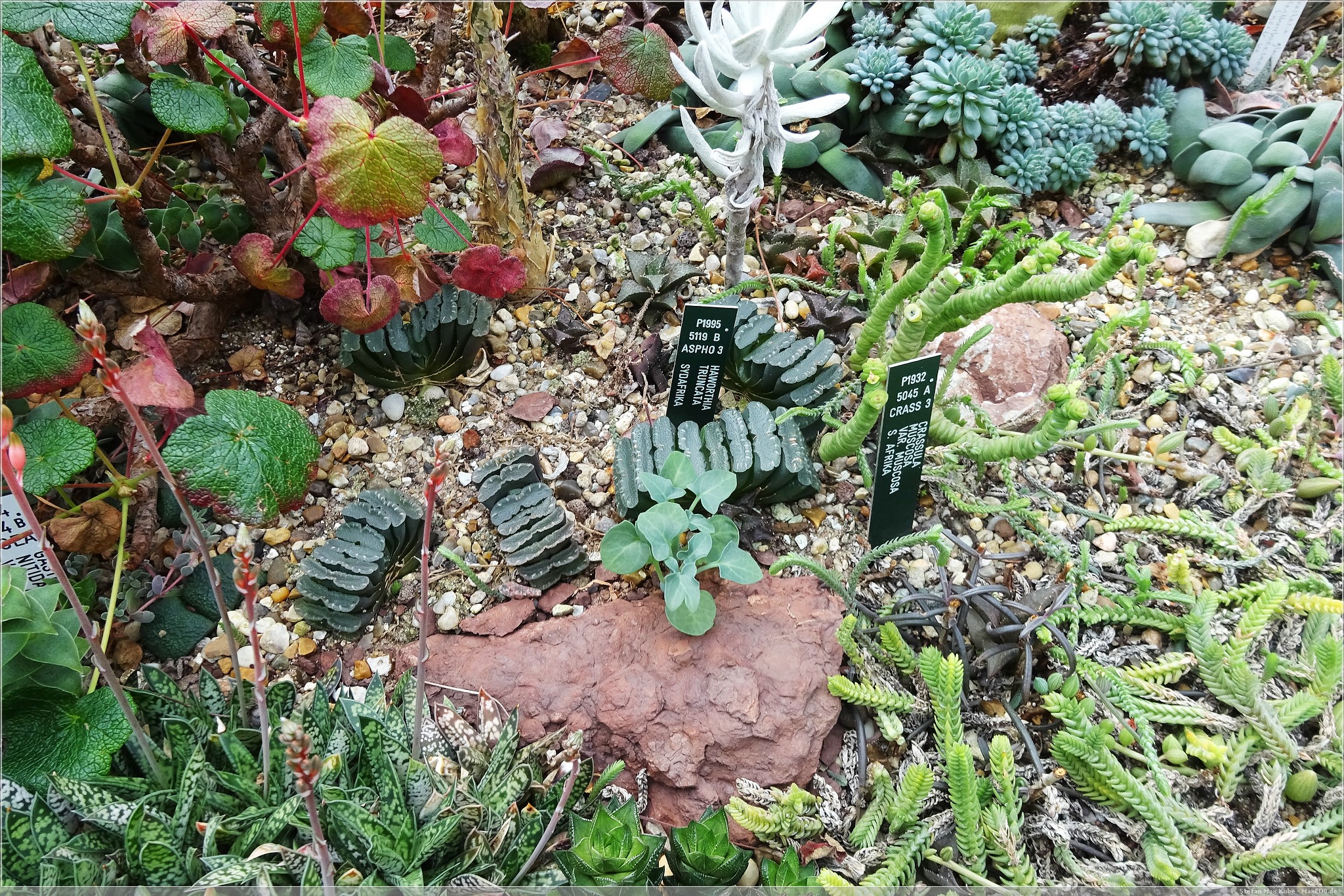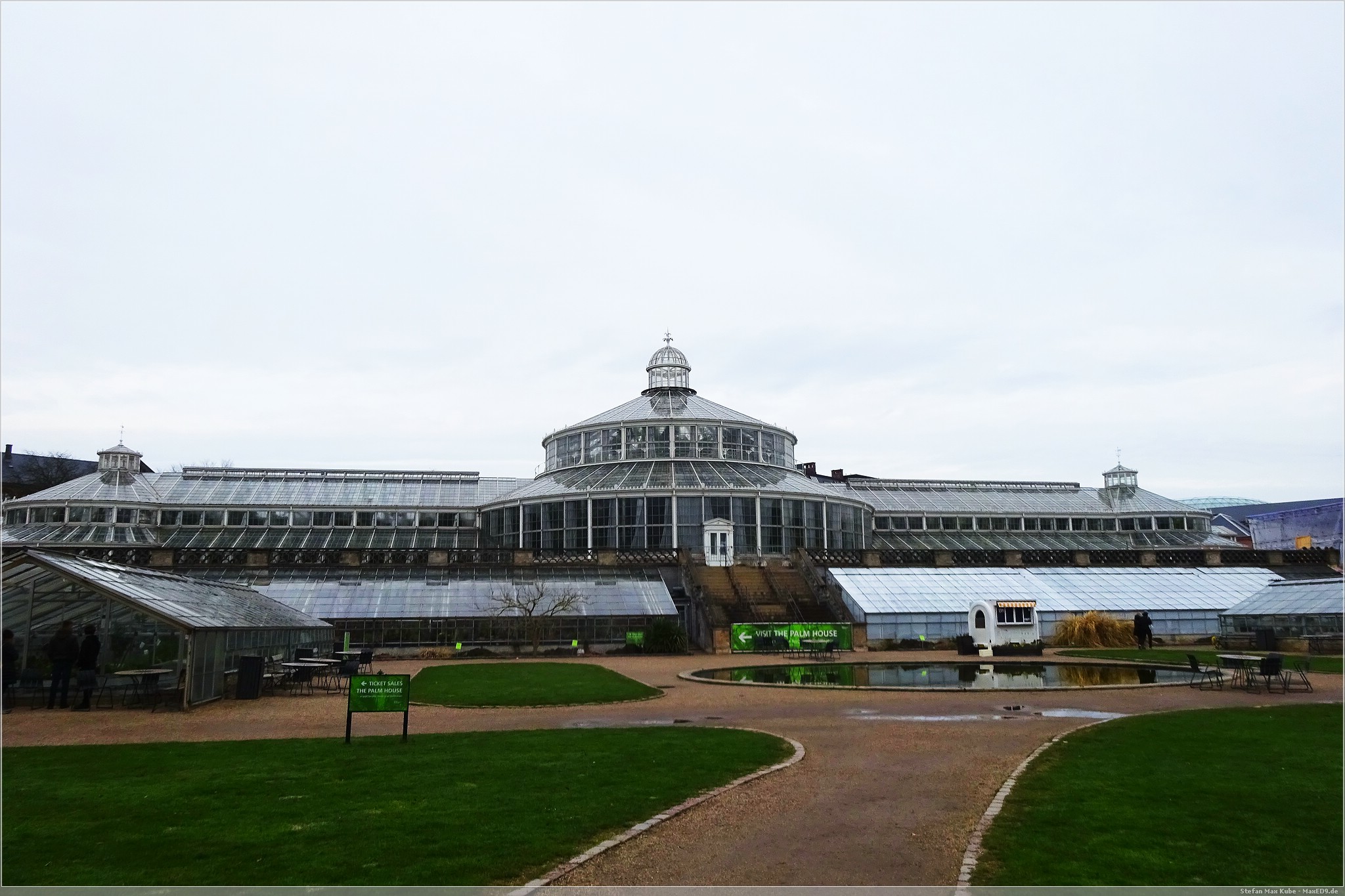 Der Garten öffnet bereits um 8:30 Uhr, das Palmenhaus jedoch erst um 10. So flanierten wir bei bedecktem Himmel, die Wege entlang und erfreuten uns an den zahlreichen Pflanzen, die es hier schon im Außenbereich durchbrochen von diversen Skulpturen zu sehen gibt.