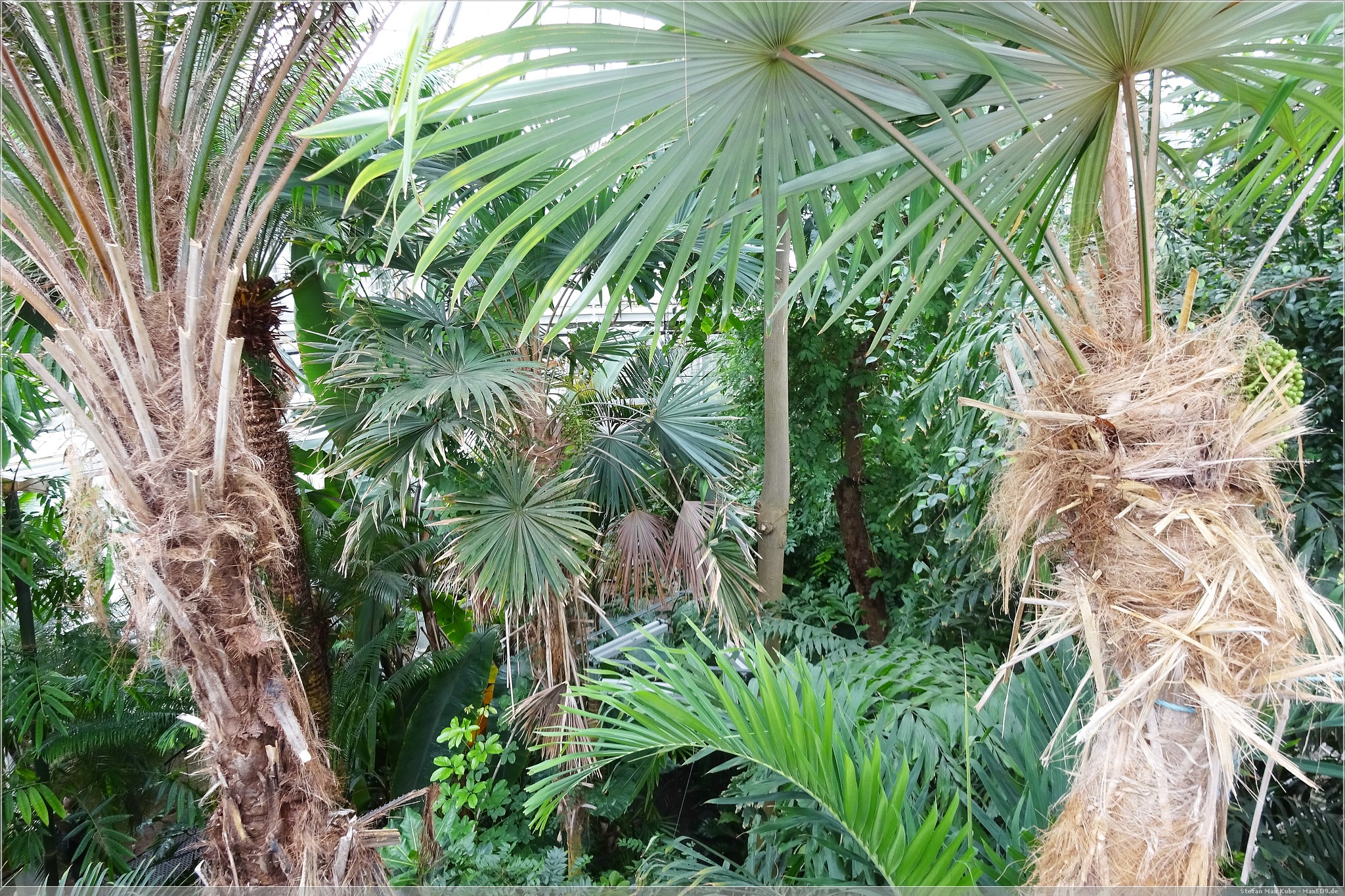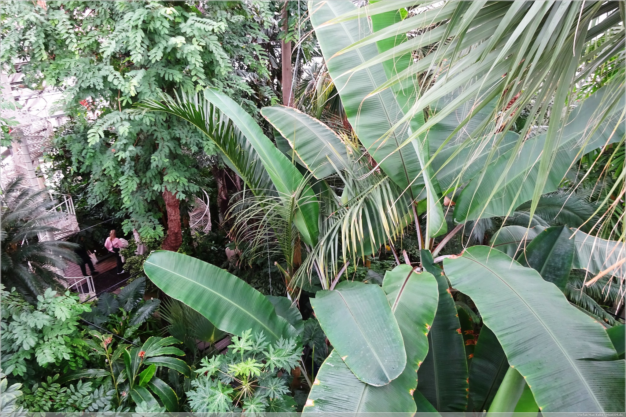 Das Palmenhaus bietet dann den Einblick in die tropischen und subtropischen Pflanzen und jeder Raum hat eine andere Temperatur und Luftfeuchtigkeit. Die Rotunde in der Mitte ermöglicht auch, die Palmen und Pflanzen von oben zu sehen.