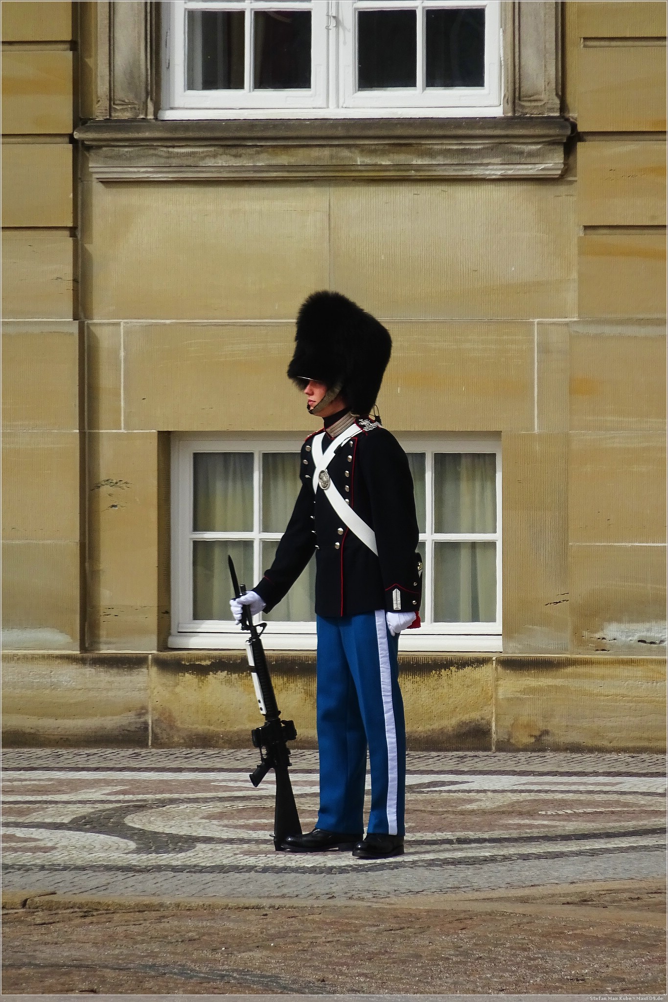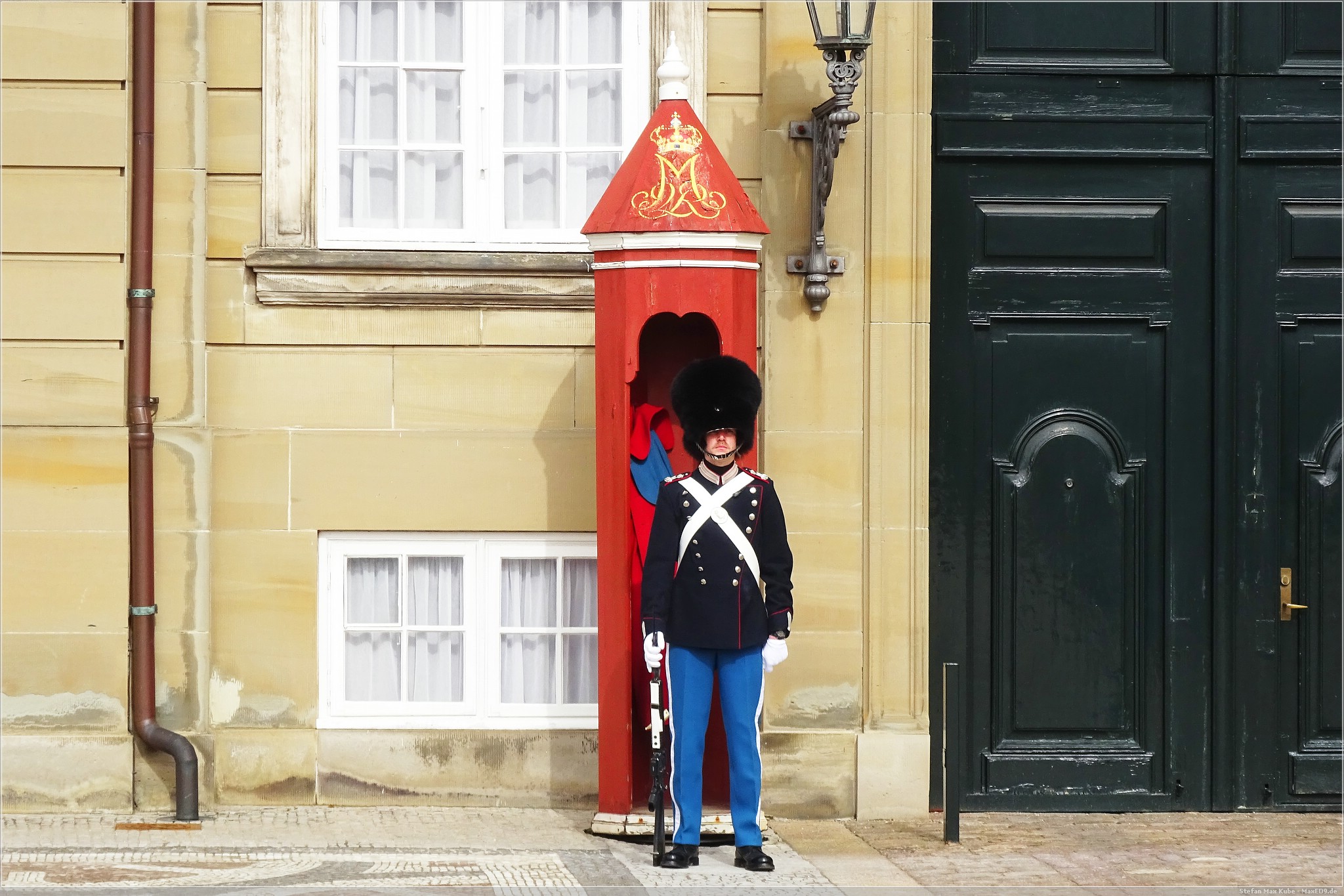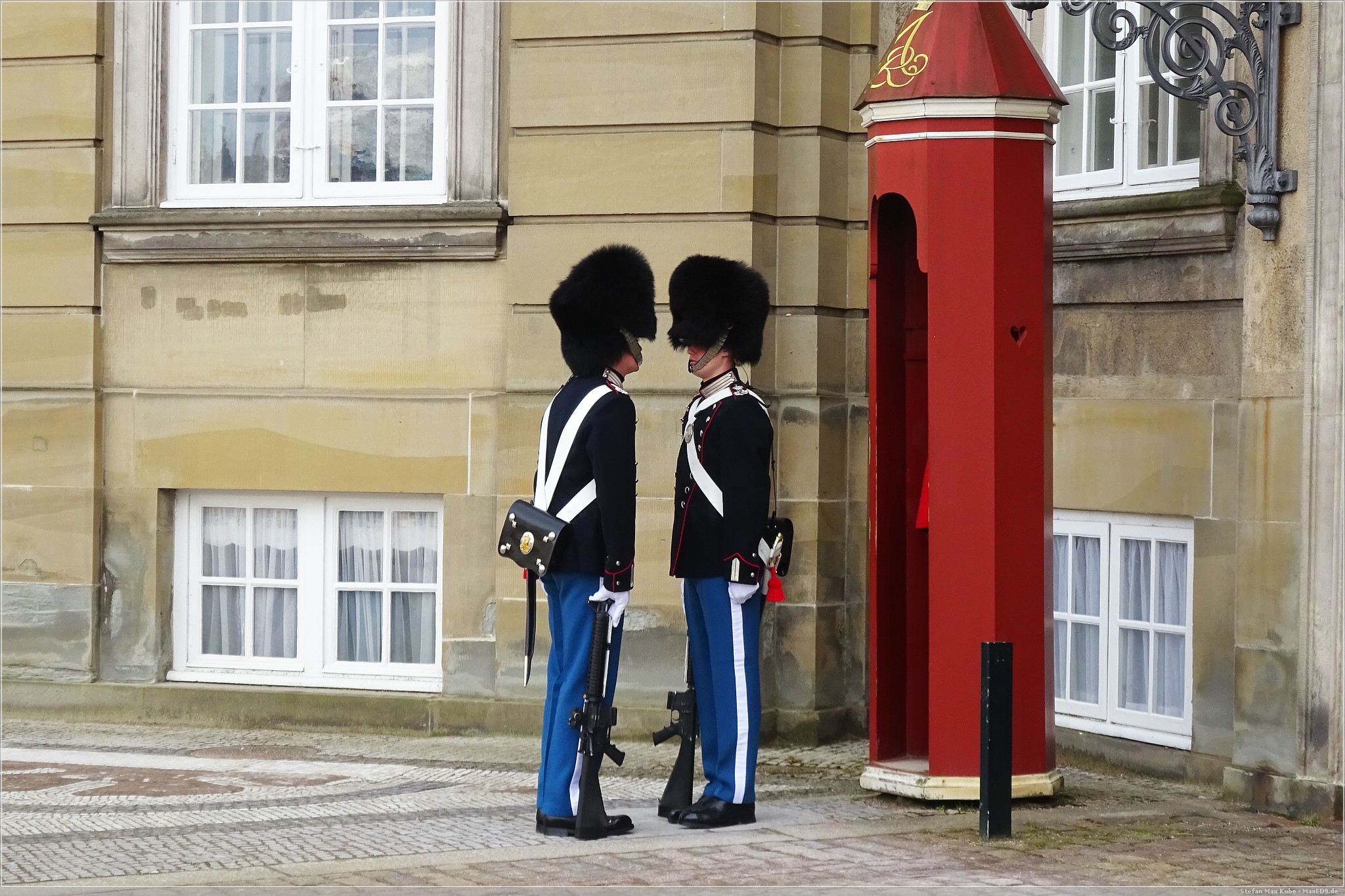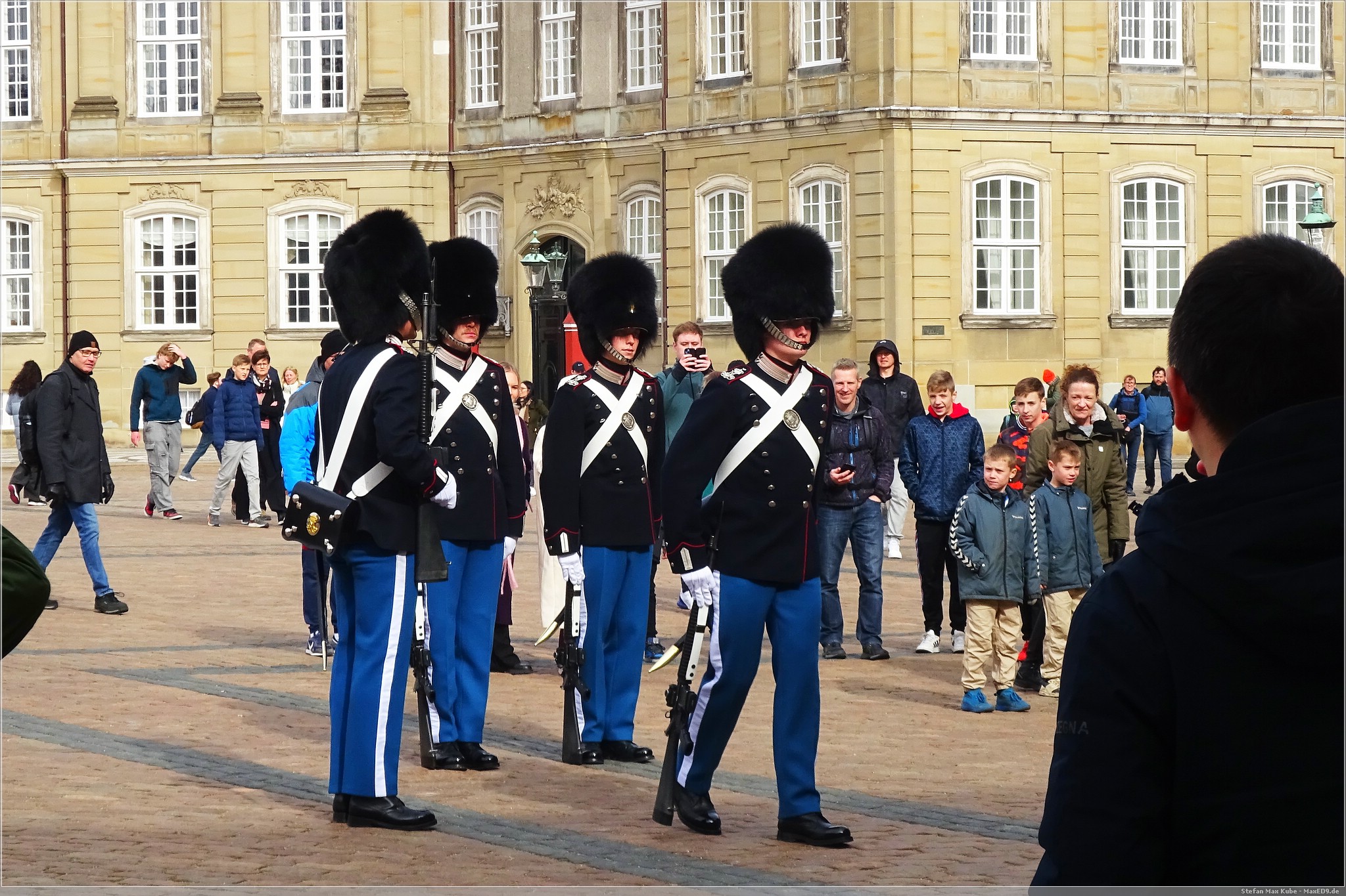 Das Schloss ist die Stadtresidenz des dänischen Königs. Anwesen war er zwar nicht, wie die fehlende Standarte zeigte, aber das tat unserem Besuch keinen Abbruch. Aber es gab eine kleine Wachablösung der Leibgarde.