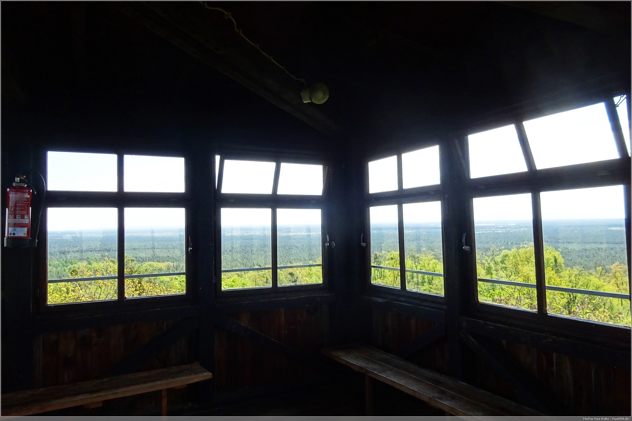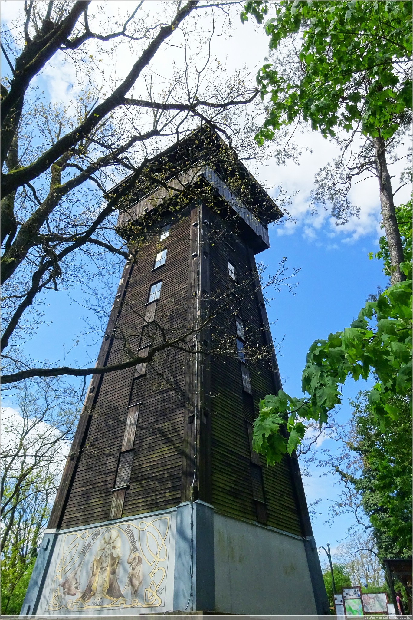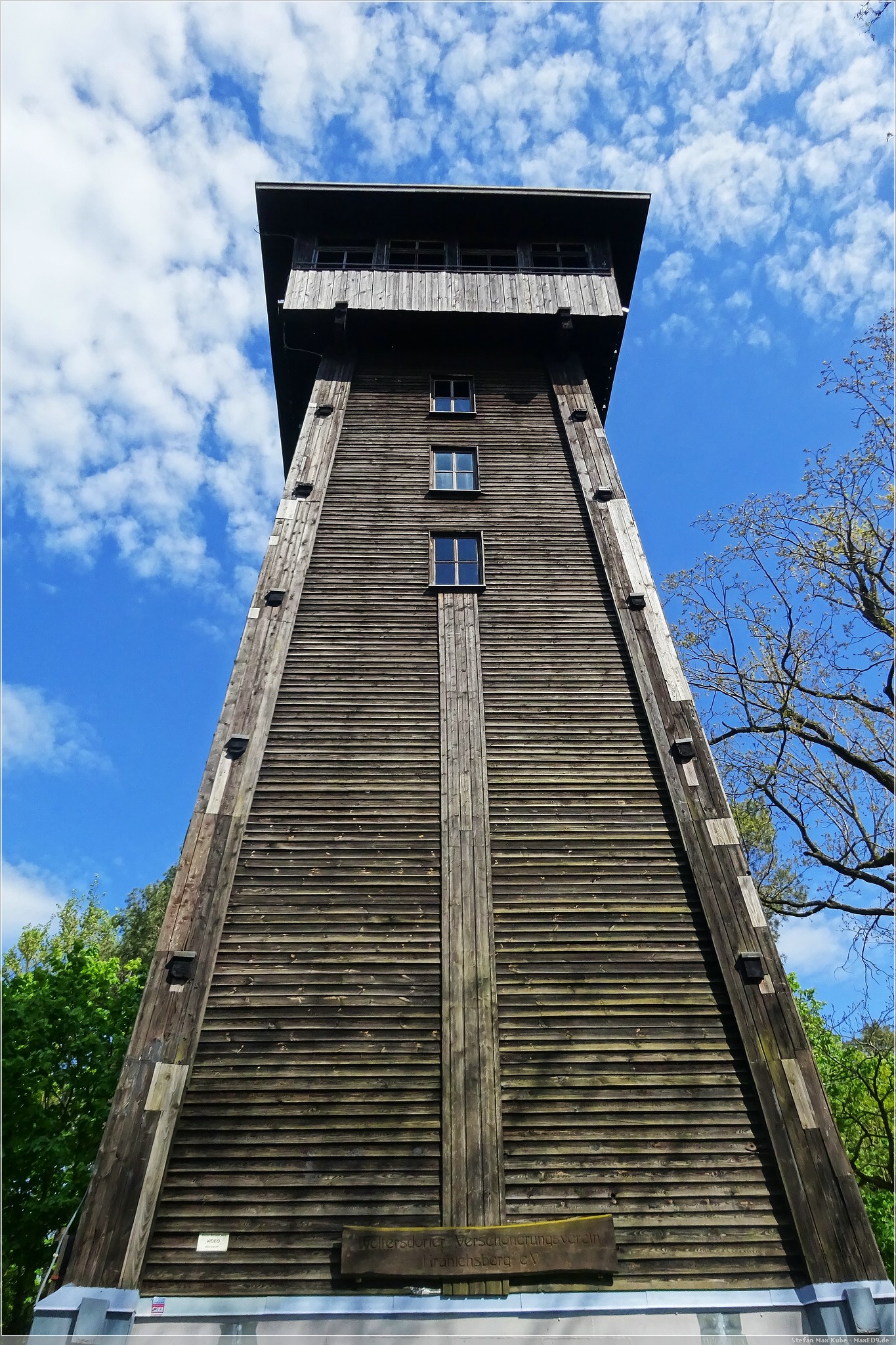 Der Weg hinauf von der Liebesquelle durch den Forst zum Turm ist nicht ganz so einfach, wie die anderen Möglichkeiten, aber am Ende kommt man auch oben auf 102 m an und steht vor dem 25 m hohen Turm.