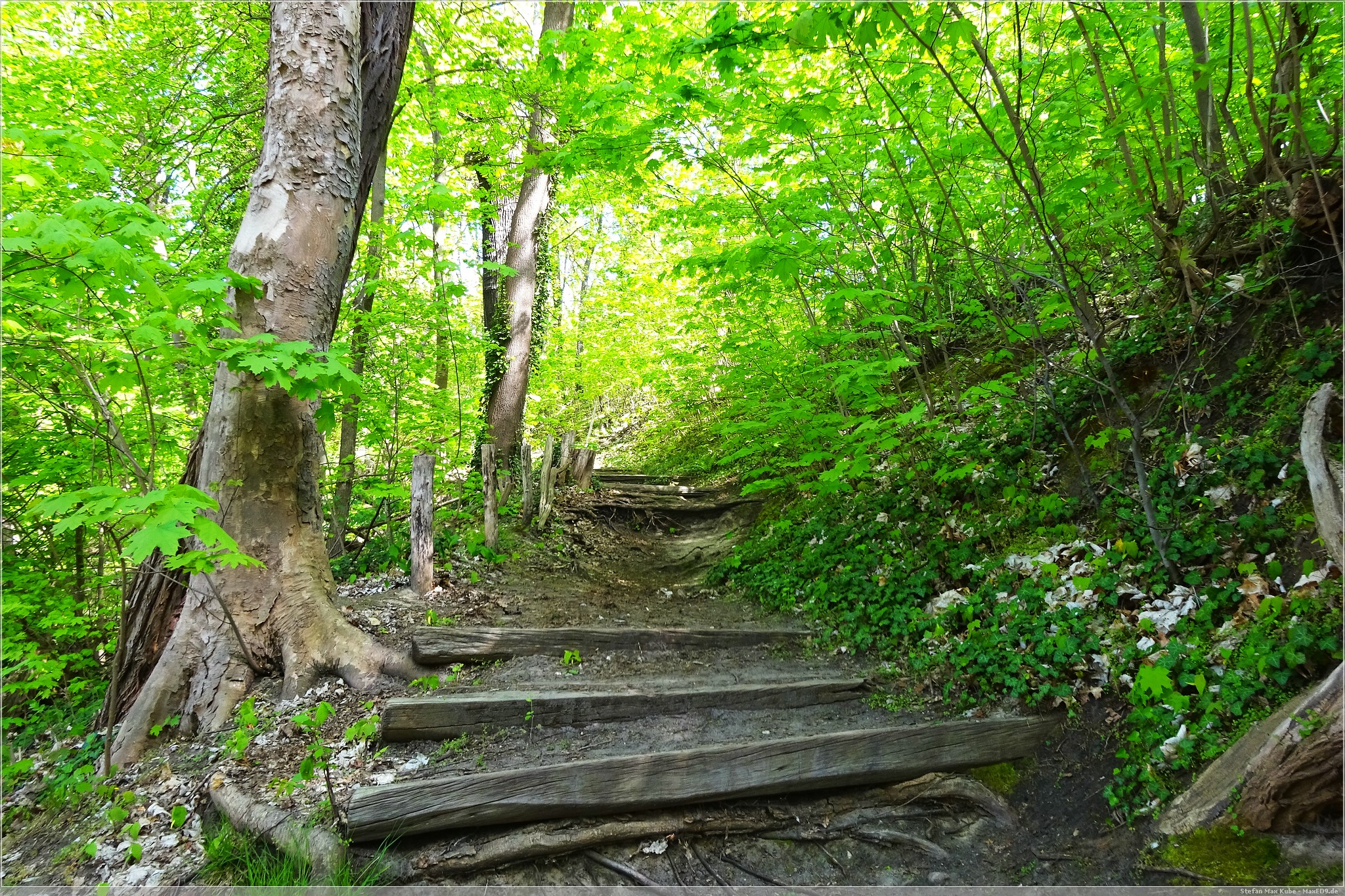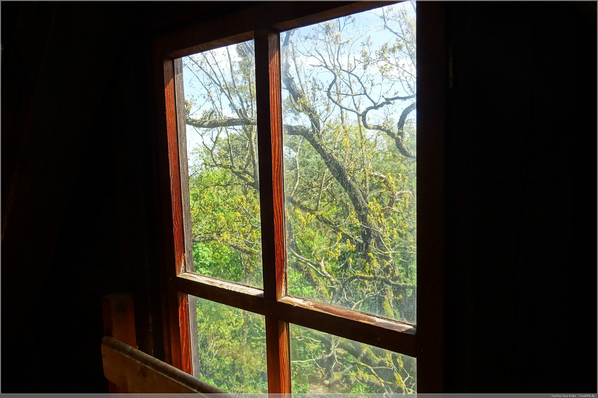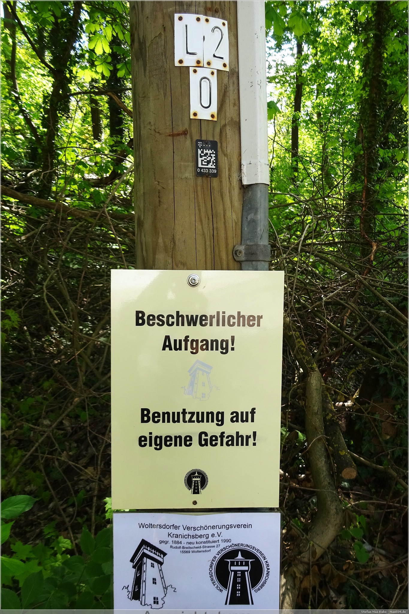 Der Weg hinauf von der Liebesquelle durch den Forst zum Turm ist nicht ganz so einfach, wie die anderen Möglichkeiten, aber am Ende kommt man auch oben auf 102 m an und steht vor dem 25 m hohen Turm.