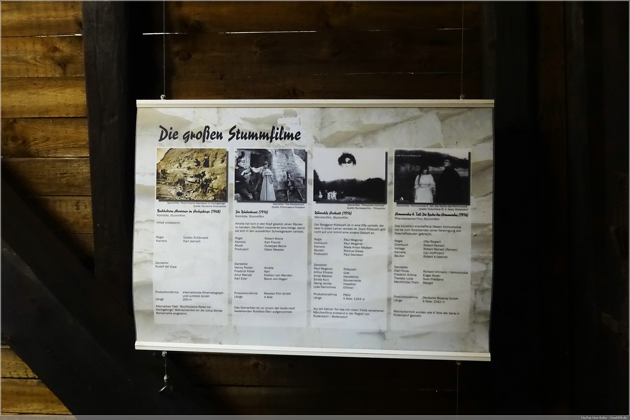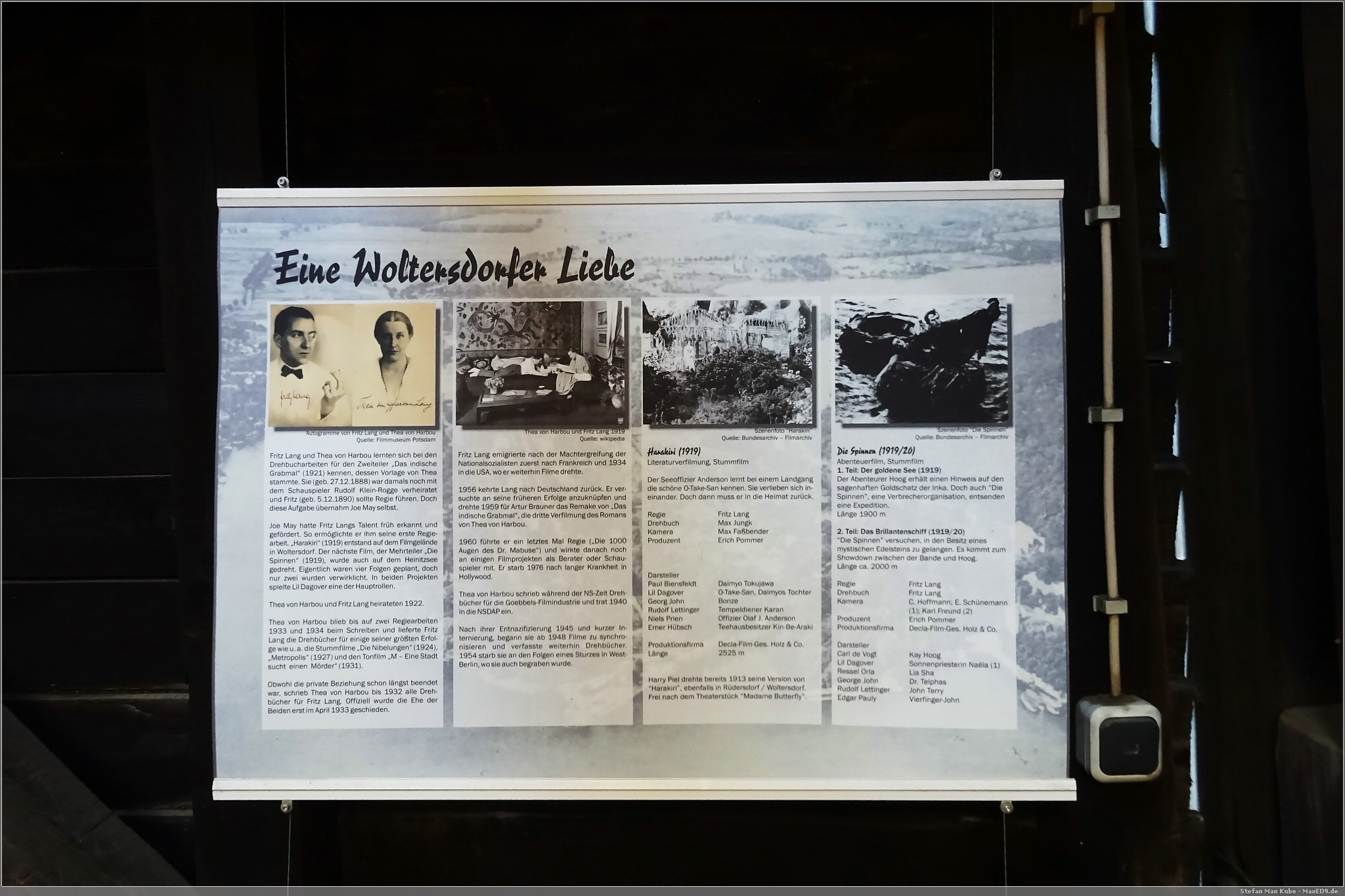 Für 2 € kommt an den Wochenenden in den Turm und kann während des Aufstiegs eine weitere Zeitreise durch die alte Filmwelt machen. Plakate, Fotos und Requisiten des Märkischen Hollywoods kann man hier finden.