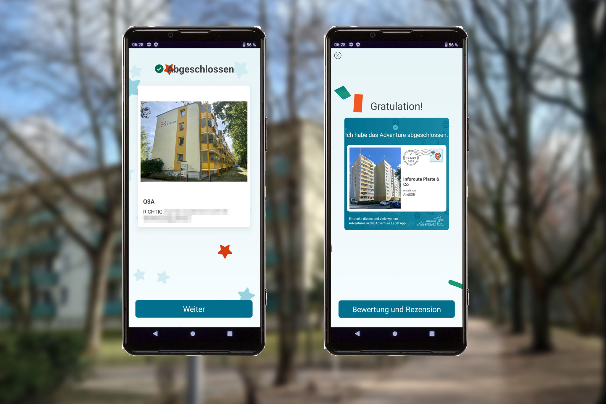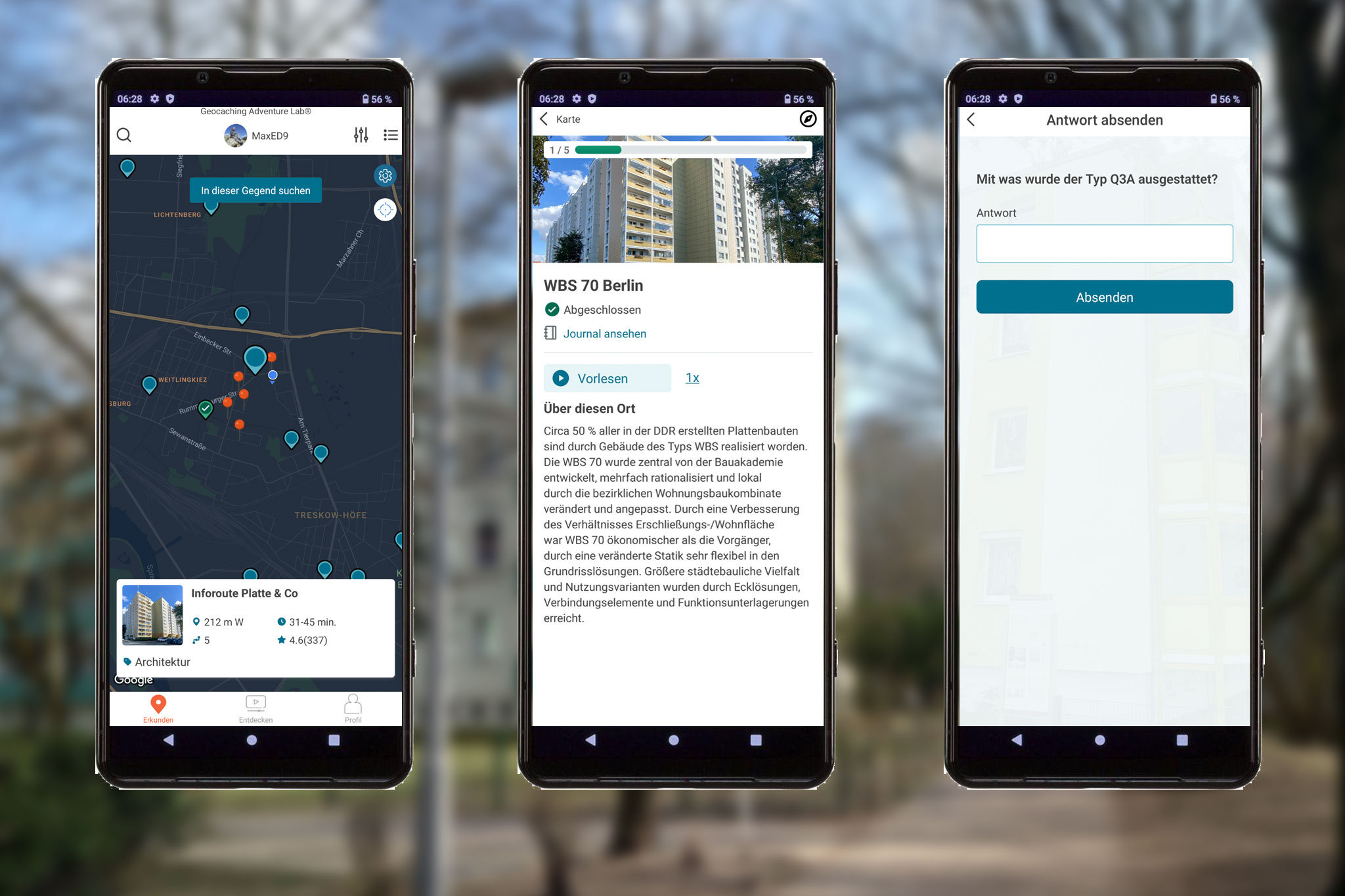 Und damit zurück zu Inforoute Platte & Co, in meinem Kiez gibt es einiger dieser Adventure Labs, unter anderem auch einen, der sich der Inforoute widmet. Im Grunde führt er zu 5 Infotafeln der Route. Es gibt jedoch insgesamt 15 Tafeln verteilt in Friedrichsfelde. Sie stellen alle die unterschiedlichen Gebäudetypen und deren individuellen Besonderheiten vor.
