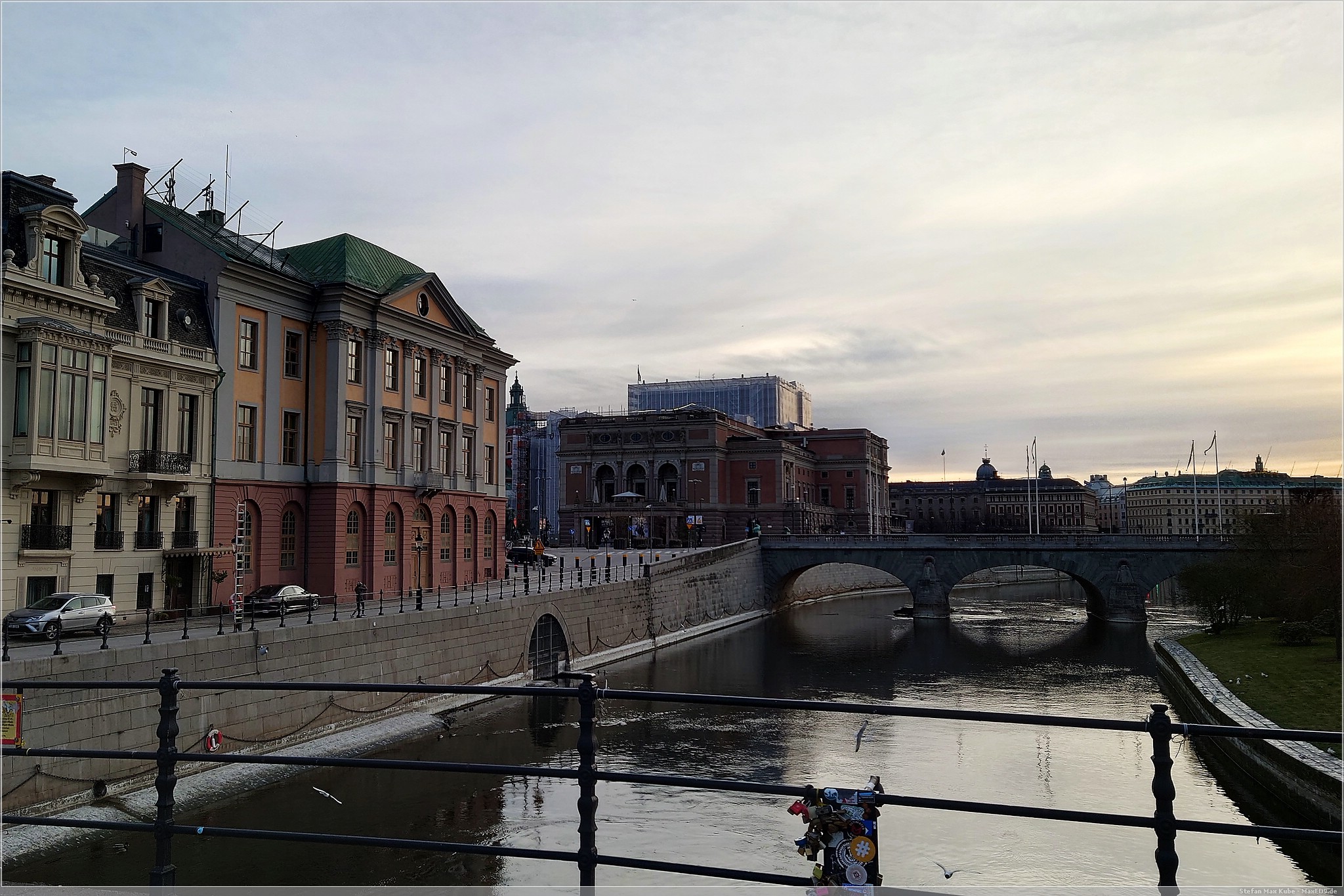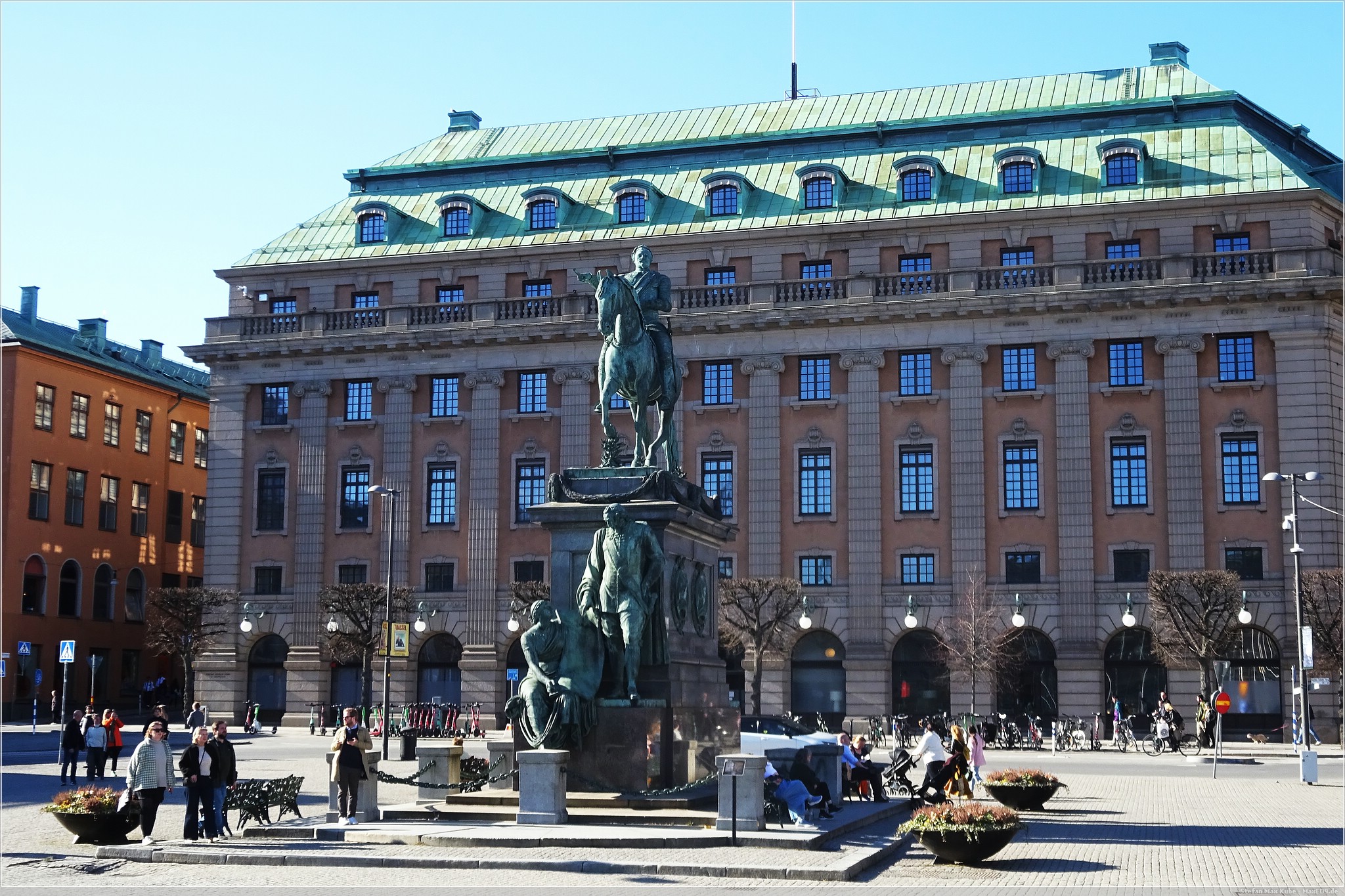 Nach dieser entschleunigten Tour spazierten wir die Strömgatan entlang bis zur Norrbro. Hier ging es auf die Insels Helgeandsholmen, auf der sich der Reichstag befindet. Nach ein paar Fotos, auch vom Denkmal zur Einführung des Frauenwahlrechts 1919, querten wir die Stallbron und setzten uns am Slottskajen in die Abendsonne. Ich griff hier noch schnell nach einem Cache[5] und dann ging es auch schon weiter zum Riddarshuset, zum nächsten Cache[6], bevor wir zum Abendessen im Restaurant Verte[7] einkehrten.