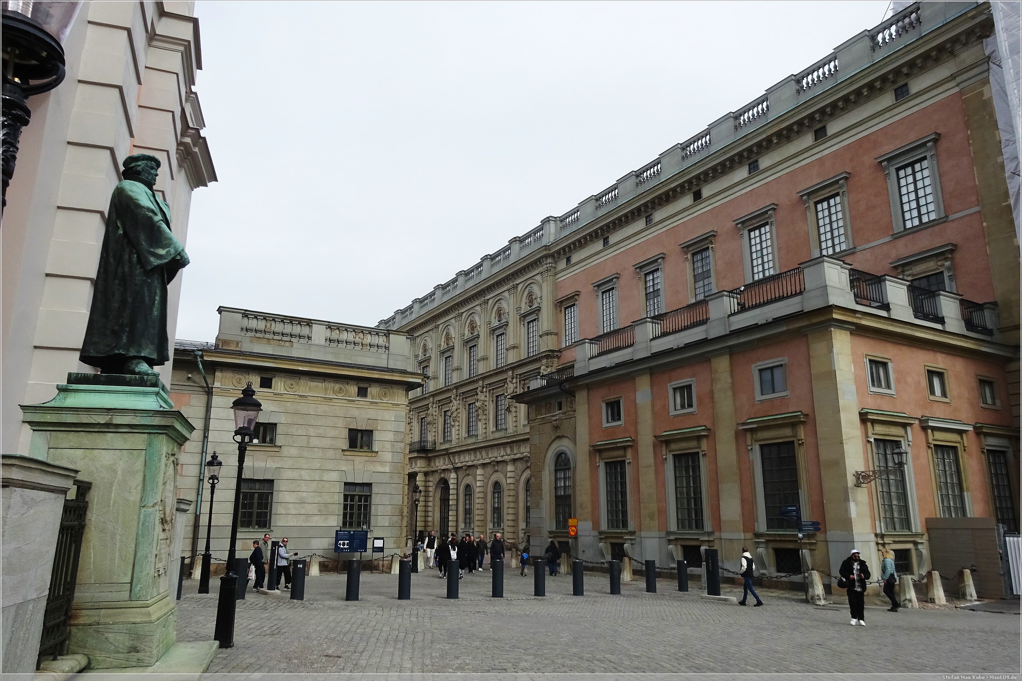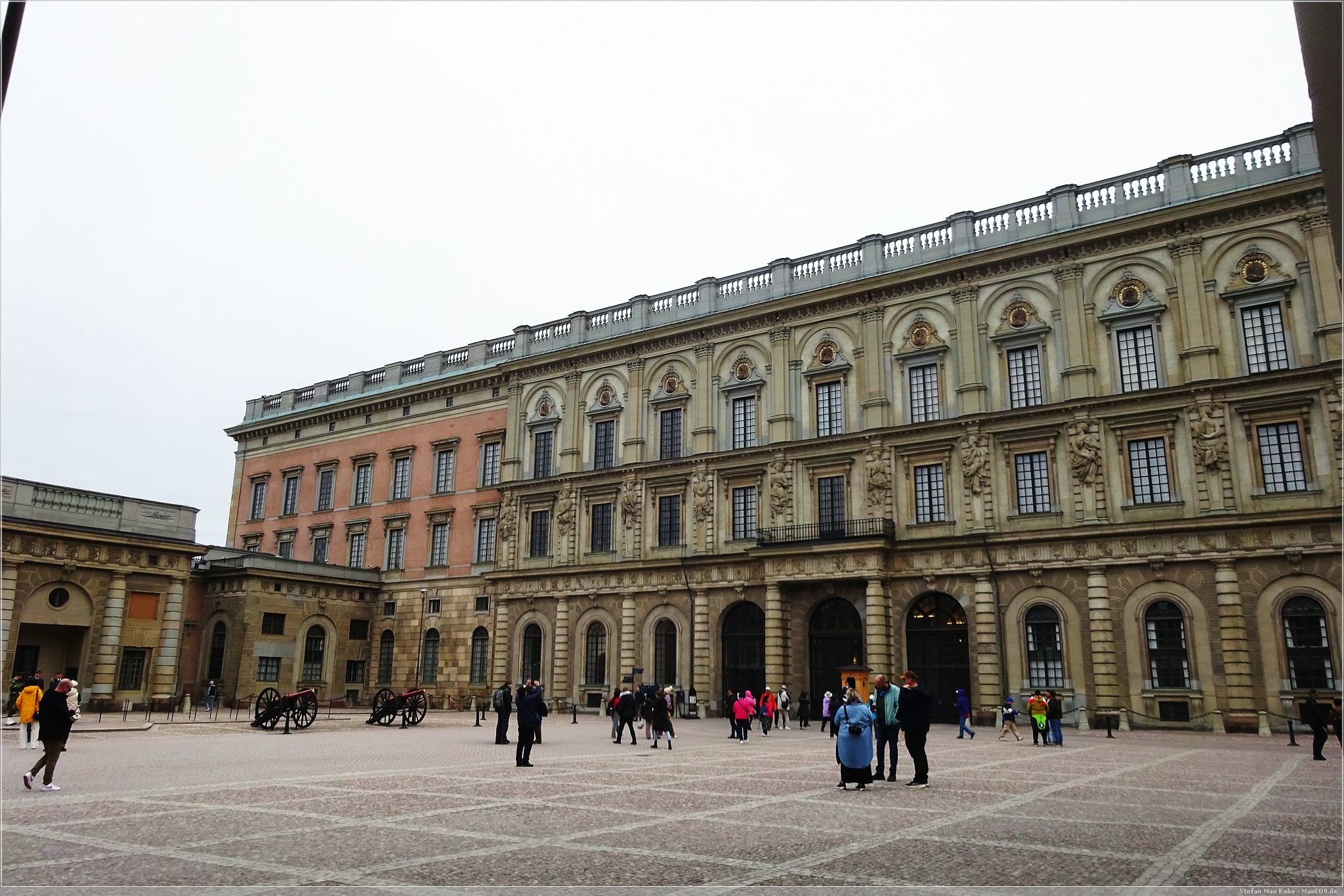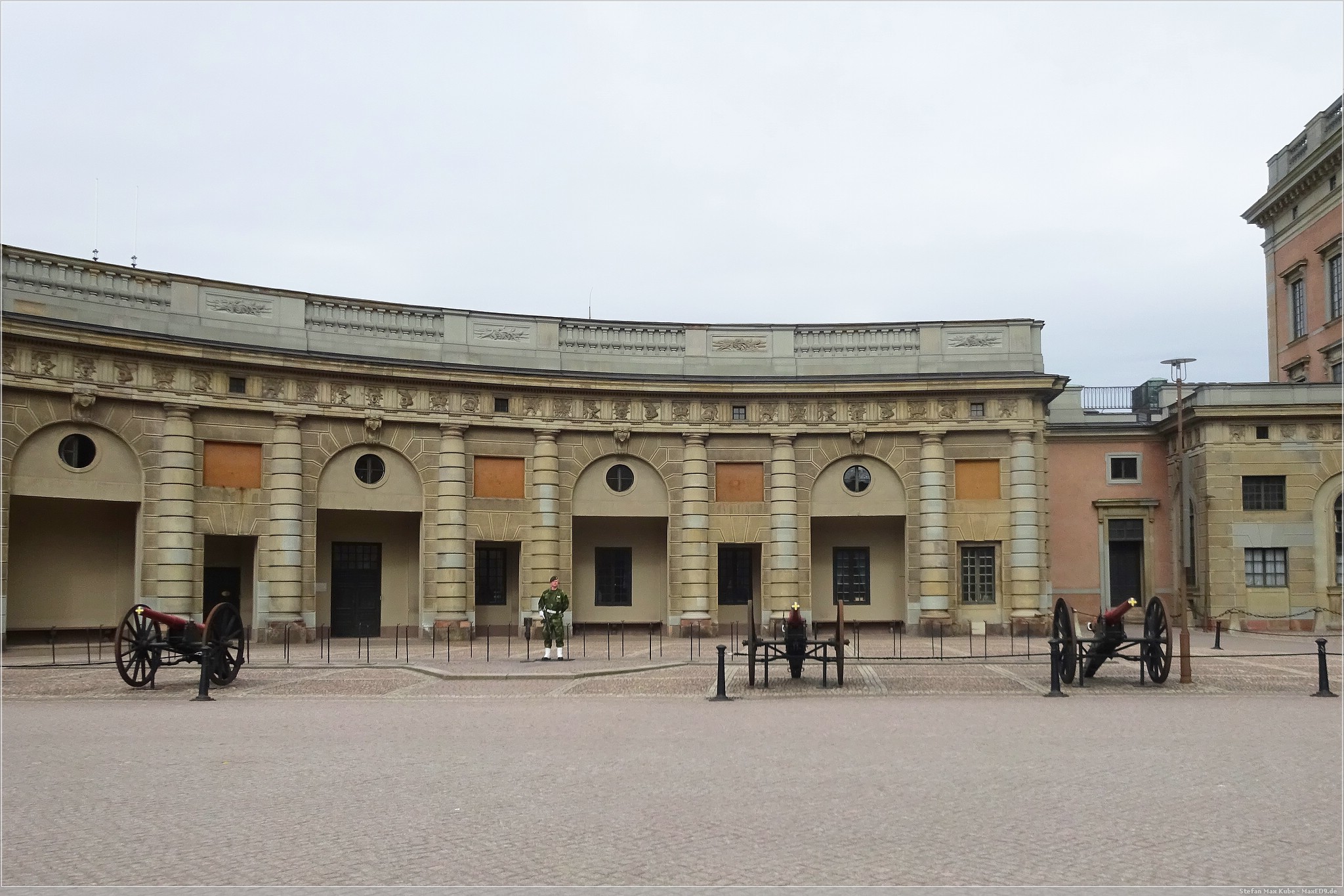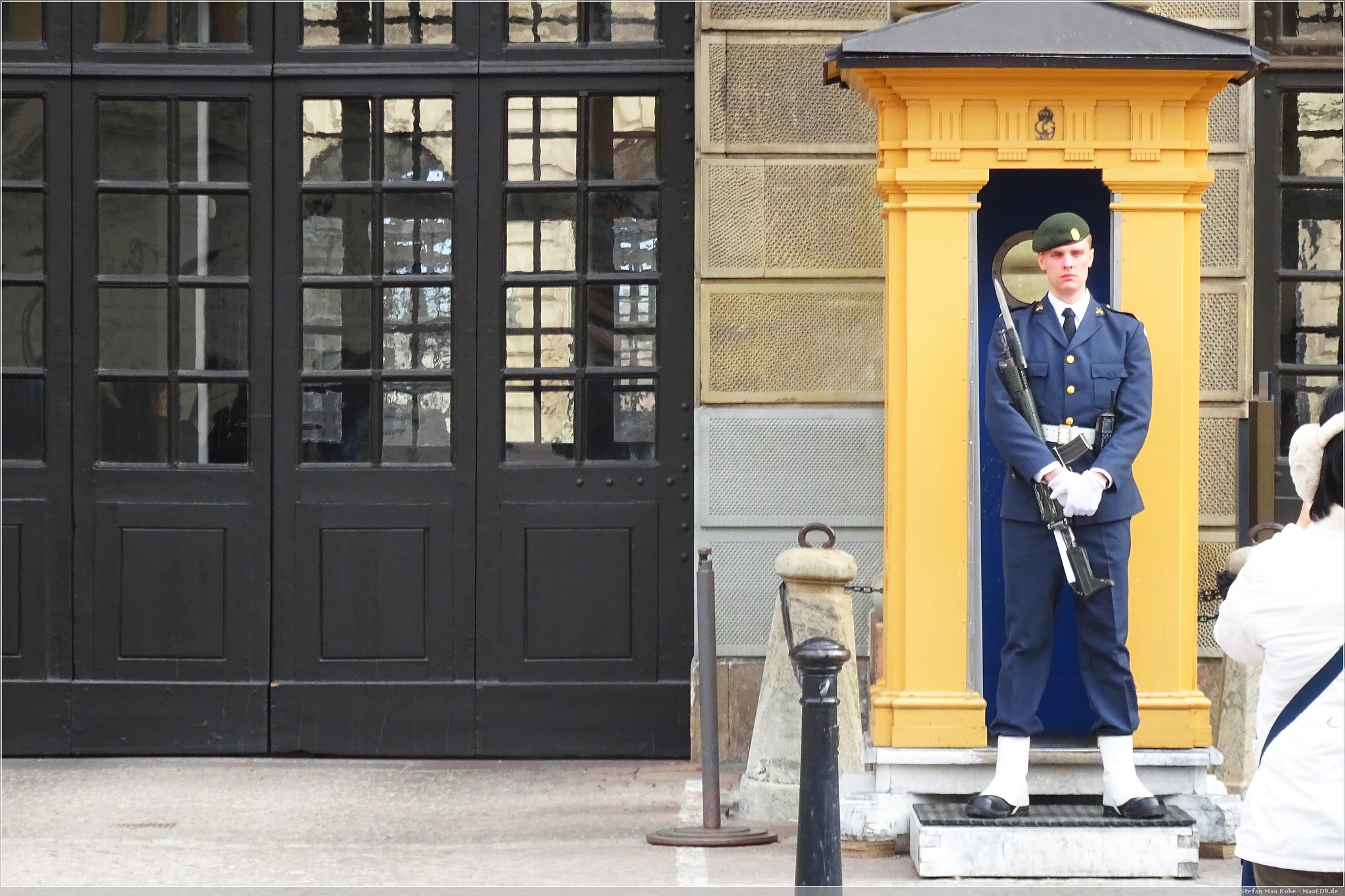 Wir liefen weiter, vorbei am Nobelpreismuseum bis zum Schloss. Reges Treiben, viele Menschen die den Wachen beim Aufpassen zuschauten. Ein Rundgang durch das Schloss ließen wir aus, ich machte hier nur fix ein Foto für einen virtuellen Cache[2], bevor wir gemütlich die vielen kleinen Gassen erkundeteten und vor allem Mama sich mit Souvenirs eindeckte.