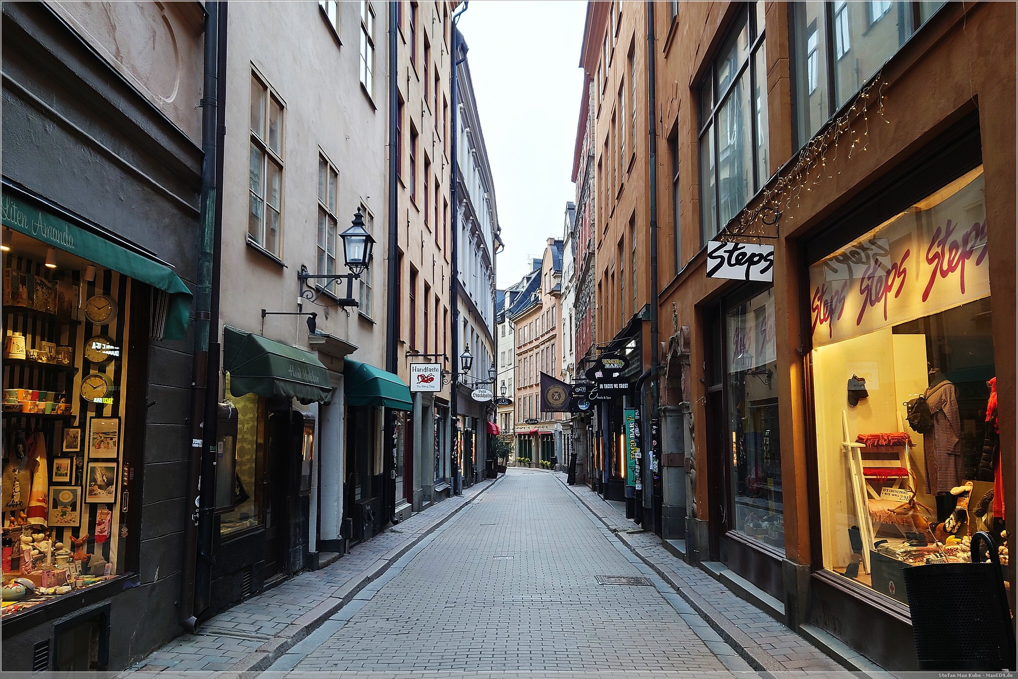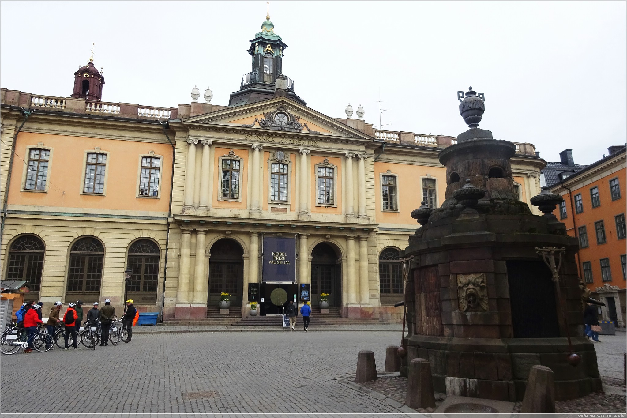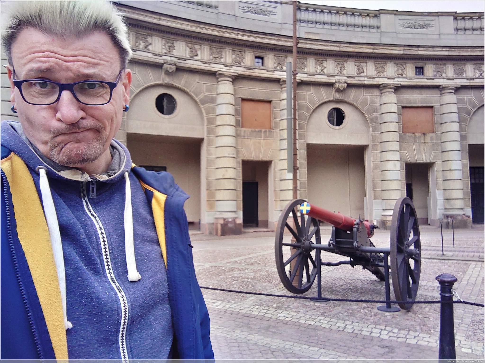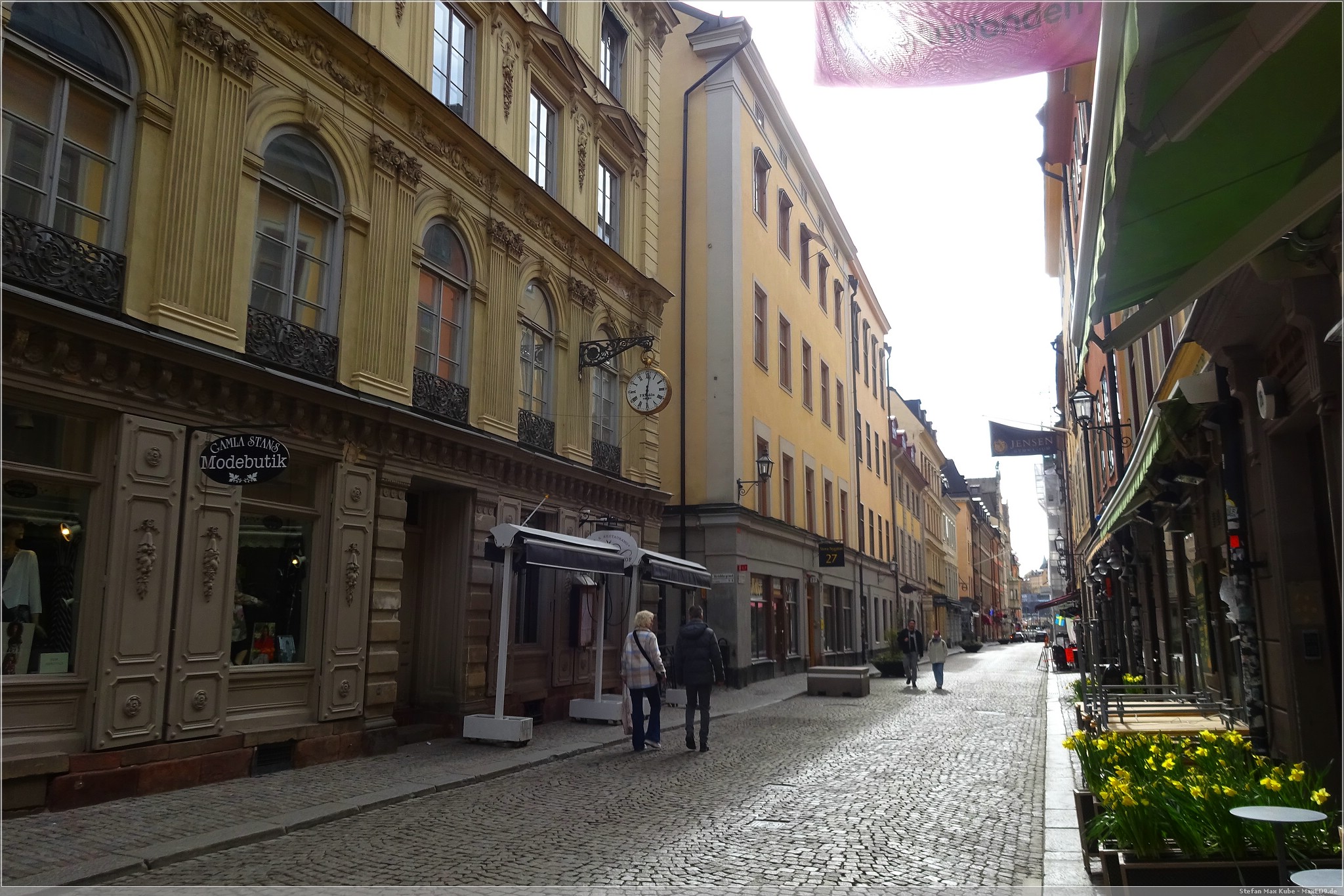 Wir liefen weiter, vorbei am Nobelpreismuseum bis zum Schloss. Reges Treiben, viele Menschen die den Wachen beim Aufpassen zuschauten. Ein Rundgang durch das Schloss ließen wir aus, ich machte hier nur fix ein Foto für einen virtuellen Cache[2], bevor wir gemütlich die vielen kleinen Gassen erkundeteten und vor allem Mama sich mit Souvenirs eindeckte.