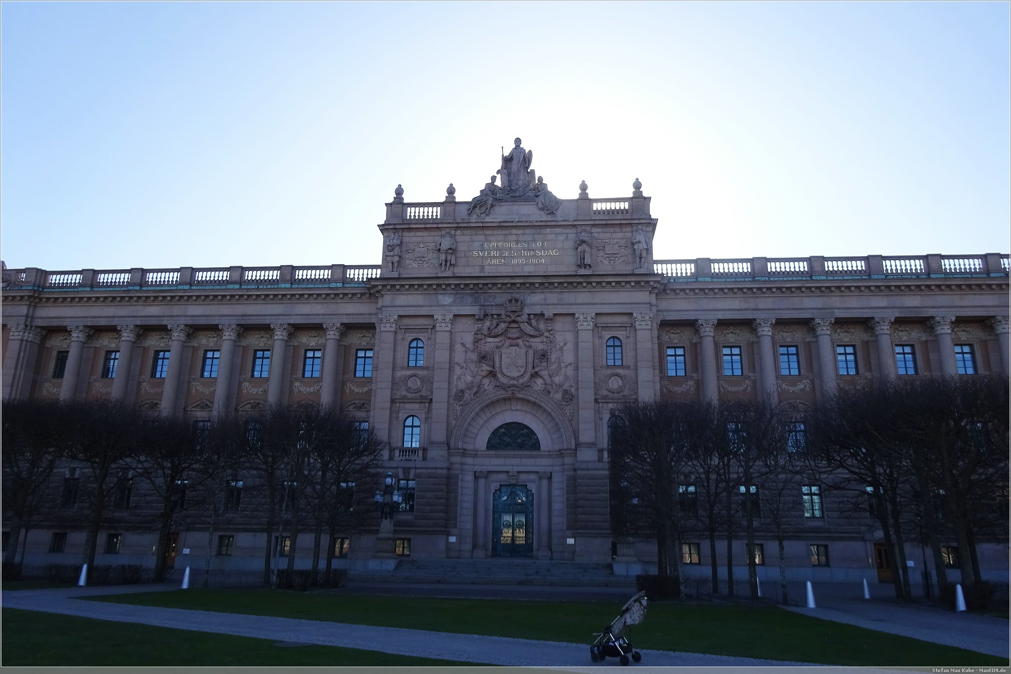 Am Morgen des Samstags, 12.04.2025, schnürte ich die Laufschuhe und begab mich auf eine gemütliche Runde. Zunächst entlang der Klara Norra Kyrkogata, vorbei am Sergels torg bis zur Brücke zum Reichstag. Hier entdeckte ich einen kleinen heimatlosen Fuchs, bevor ich die Brücke querte und durch den Hof des Reichstags in die Gamla stan, Altstadt, lief.