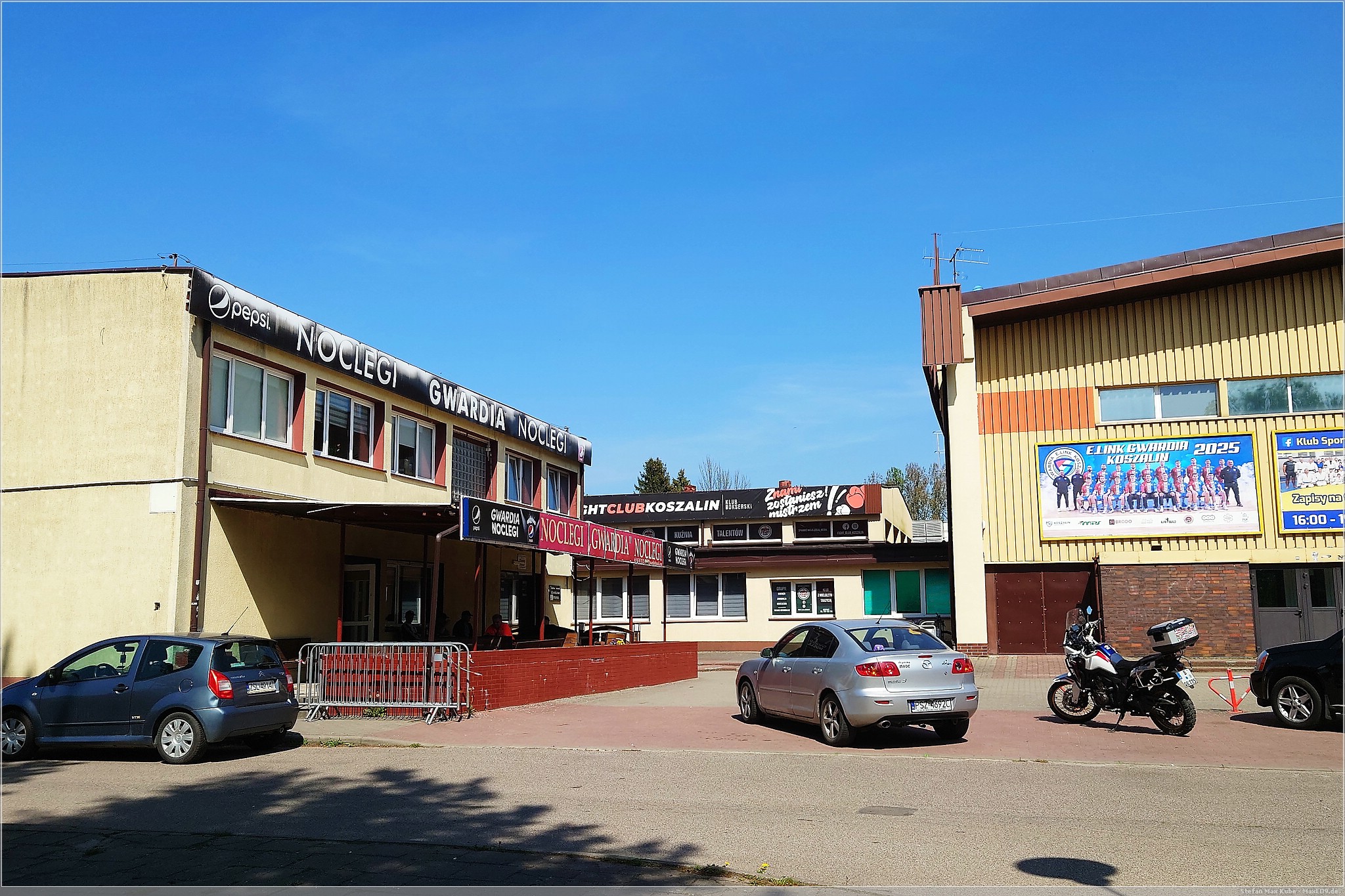Nach einem kurzen Fotostopp setzte ich meine Fahrt über die 122 bis nach Choijna fort. Weiter ging es durch Stargard und die Sonne wurde immer kräftiger. Ich passierte Łobez und Świdwin, bis ich gegen 14 Uhr Koszalin und die Unterkunft Gwardia Koszalin[1] erreichte. Im Grunde ist es das Sportlerheim direkt am Fußballplatz, günstig und rustikal.