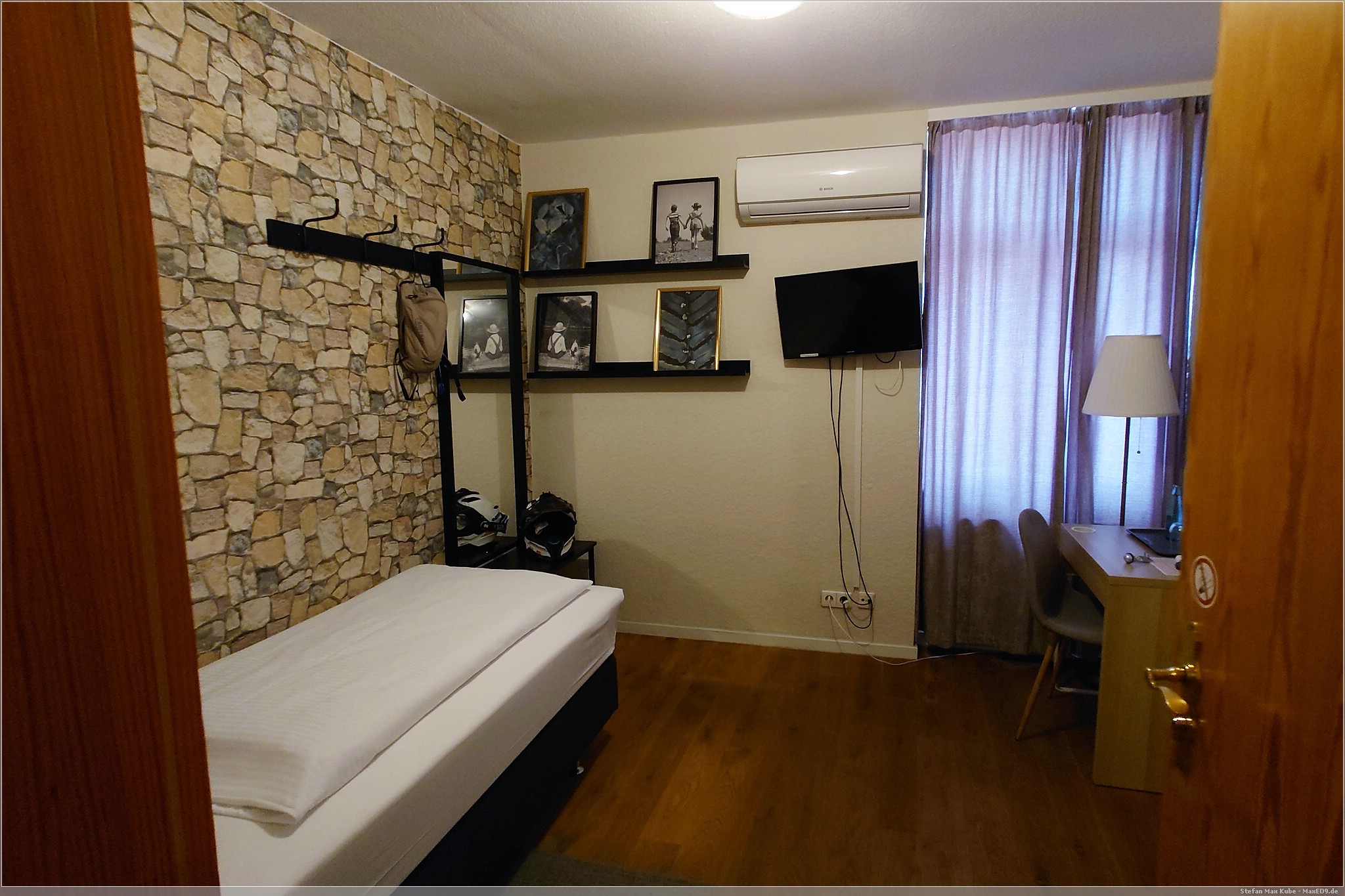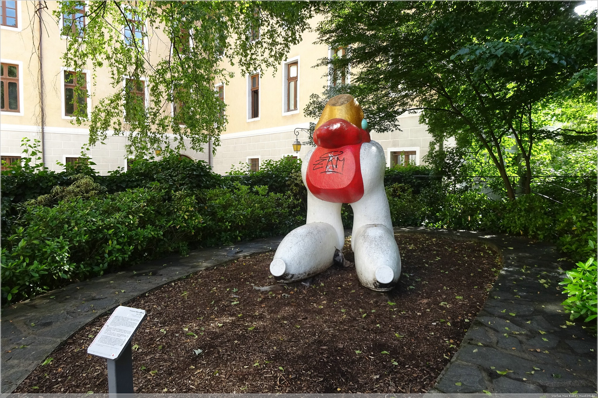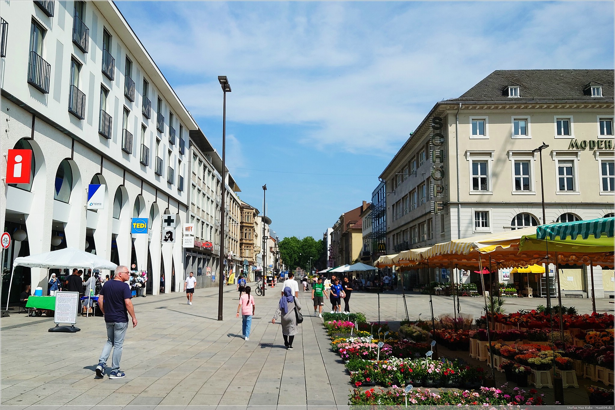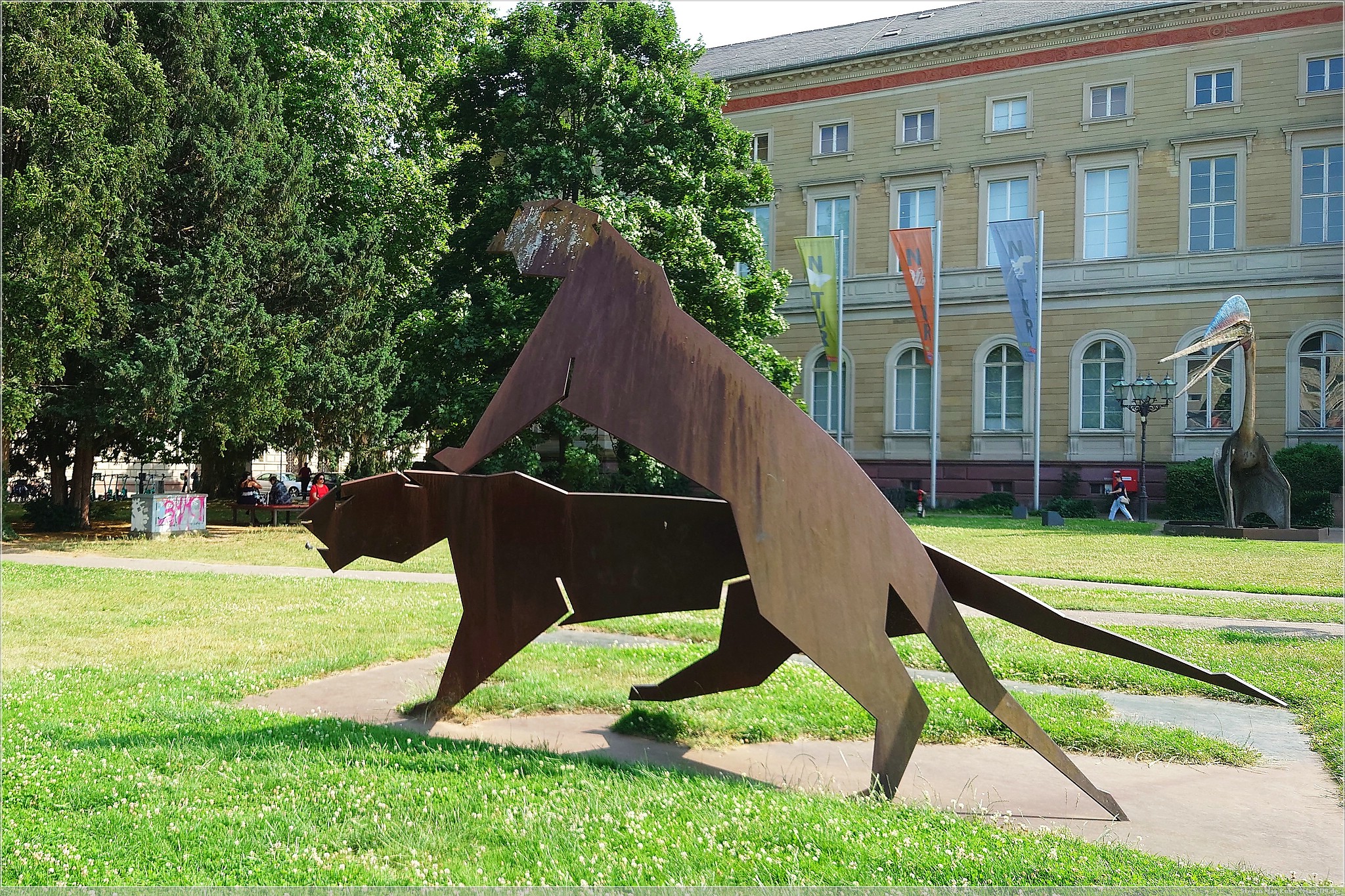 Es wurde auch recht schnell sehr warm und so kam ich gegen 15 Uhr und bei 33 °C sehr verschwitzt in Karlsruhe an. Meinen Schlafplatz hatte ich im Hotel Beim Schupi[1] gebucht und nachdem ich das Zimmer bezog und mich frisch machte, machte ich mich auf den Weg in Richtung Innenstadt.