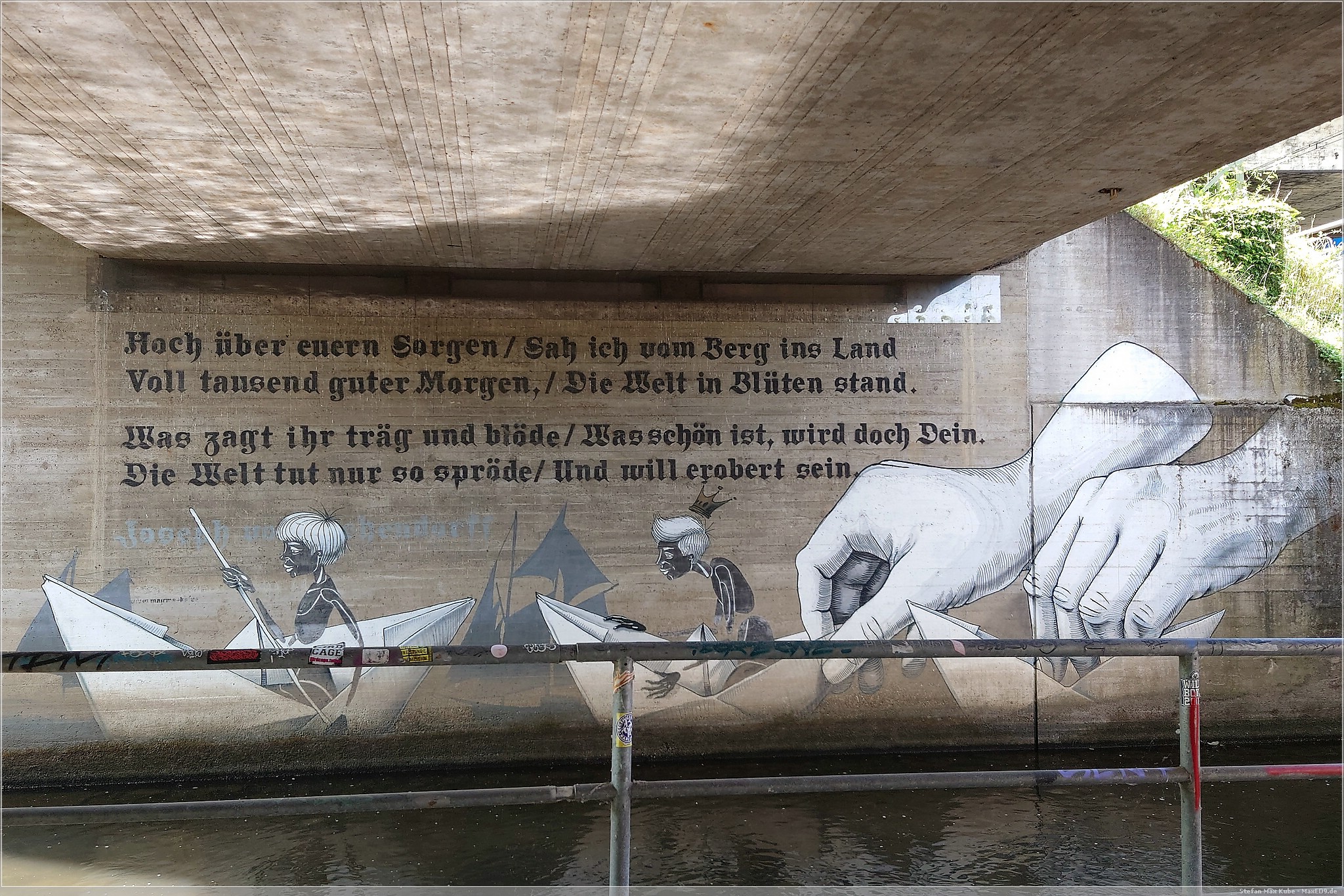 Dazu lief ich zunächst ein Stück an der Alb entlang bis zur Straßenbahnhaltestelle und nach nur wenigen Stationen stand ich auch schon am Karlsruher Marktplatz in der Sonne. Ich lief zum Karlsruher Schloss und spazierte etwas durch den Schlosspark, aber da die Sonne unerbittlich brannte, blieb ich nicht lange und genoss lieber ein erfrischendes Eis in der Claus Eismanufaktur[2].