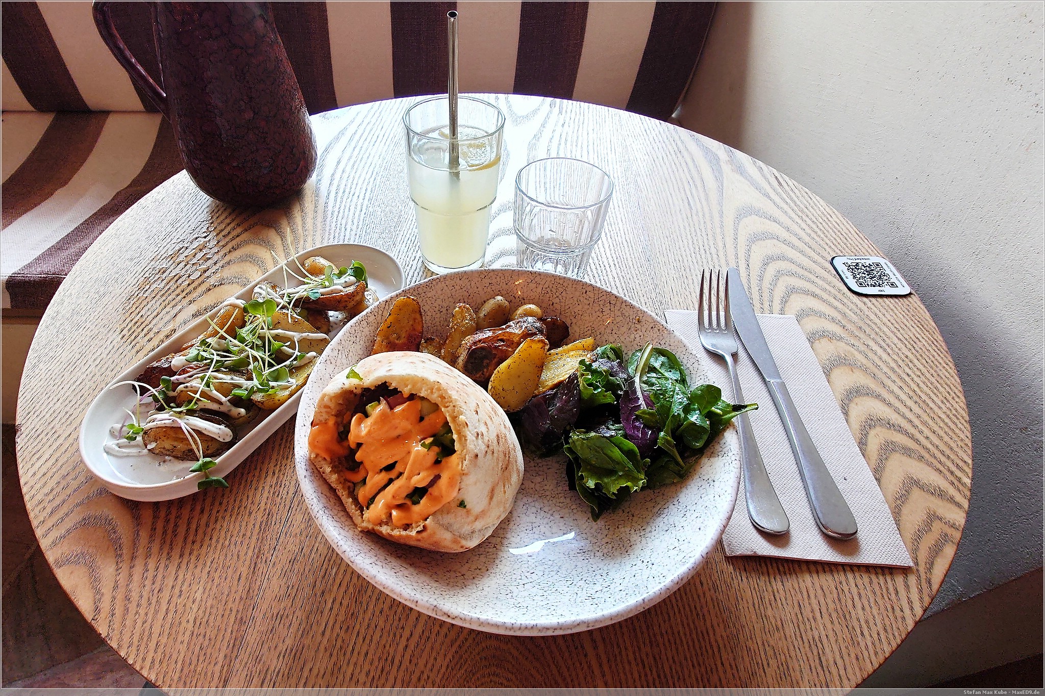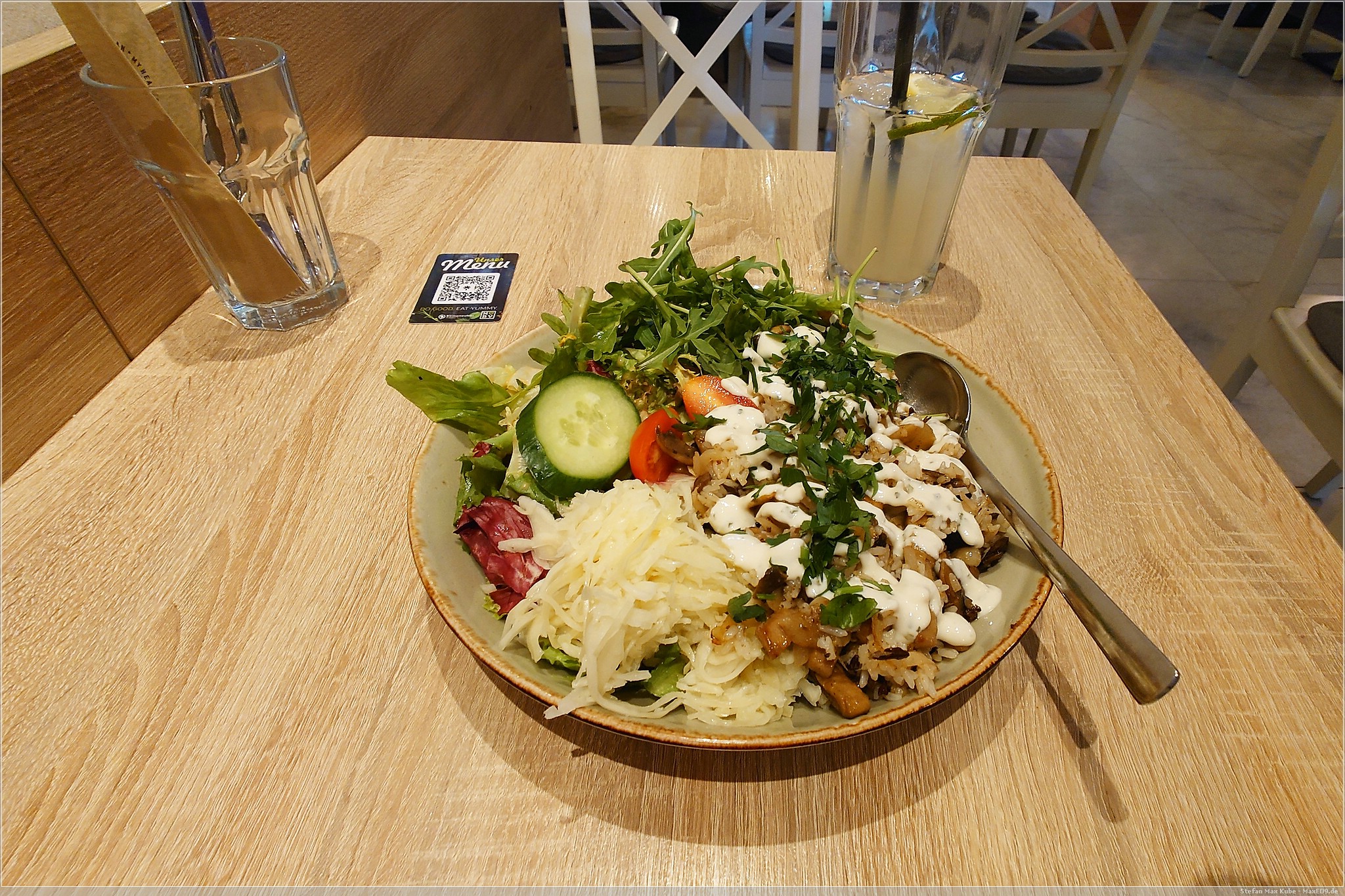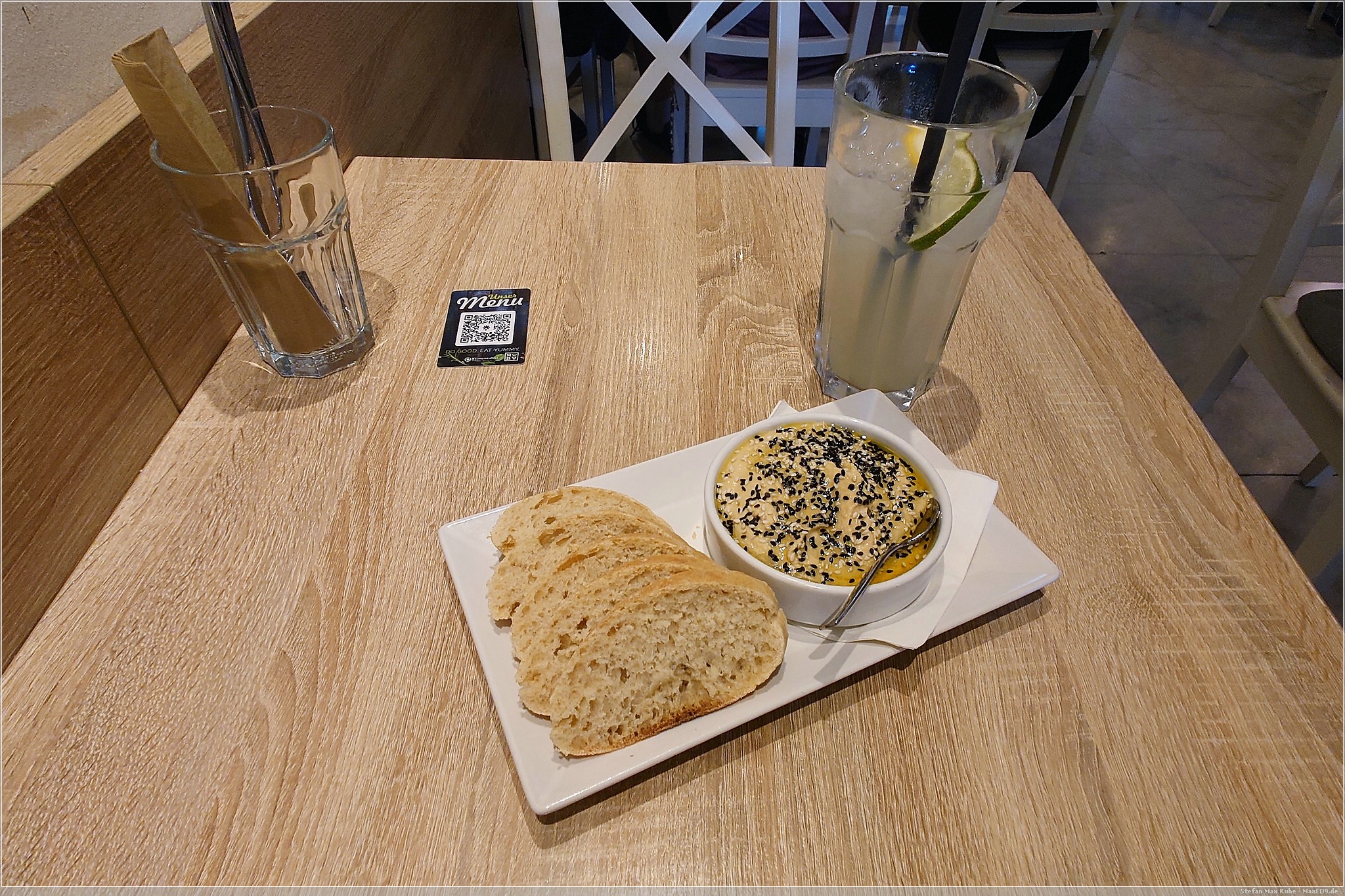 Später lief ich noch am Naturkundemuseum vorbei und schlenderte noch etwas durch die Gassen, bevor ich zum Abendessen bei My Heart Beats Vegan[3] einkehrte. Mit leckerem Hummus und eine Gyros-Reis-Pfanne schloss ich den Tag ab.