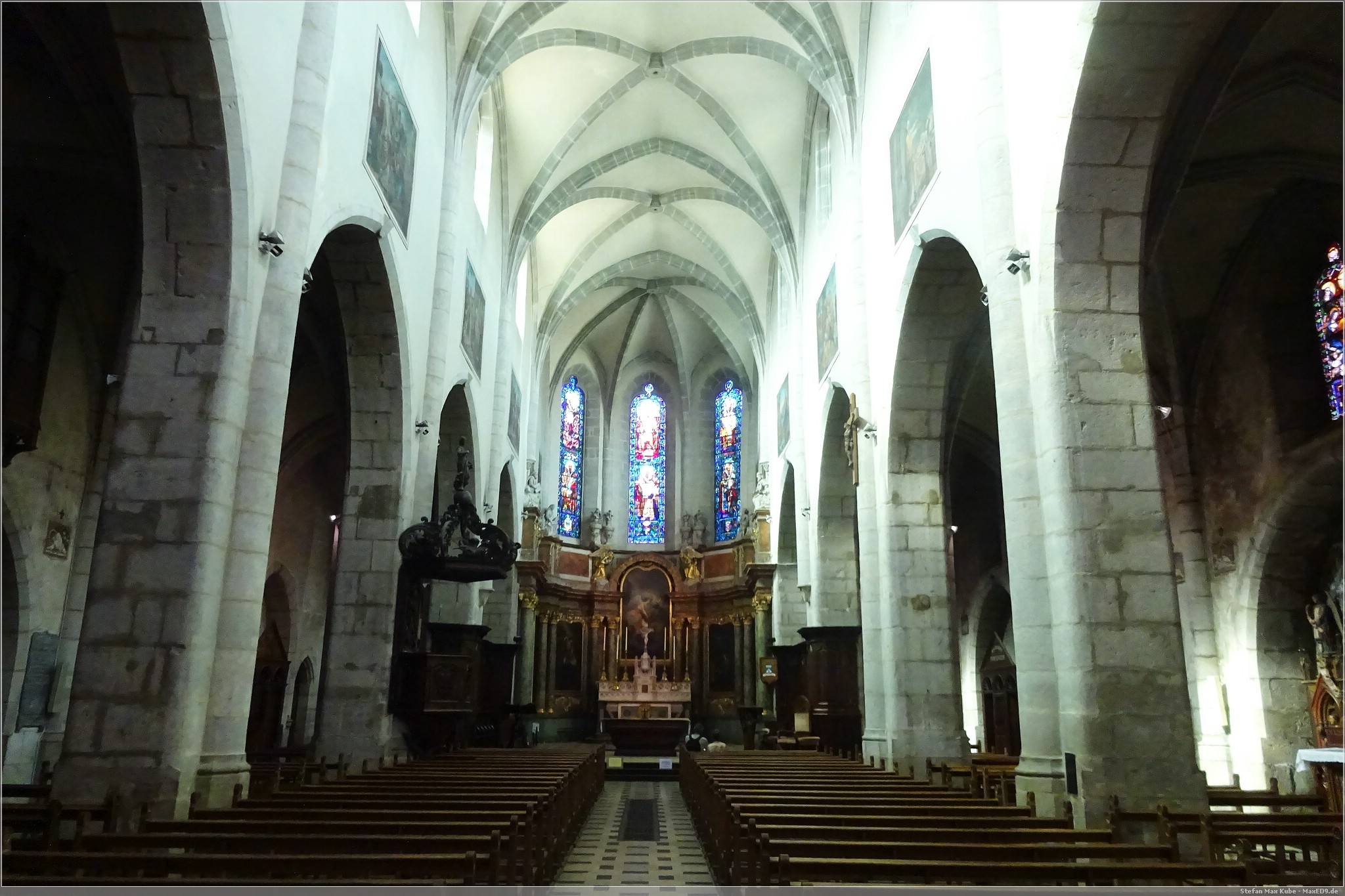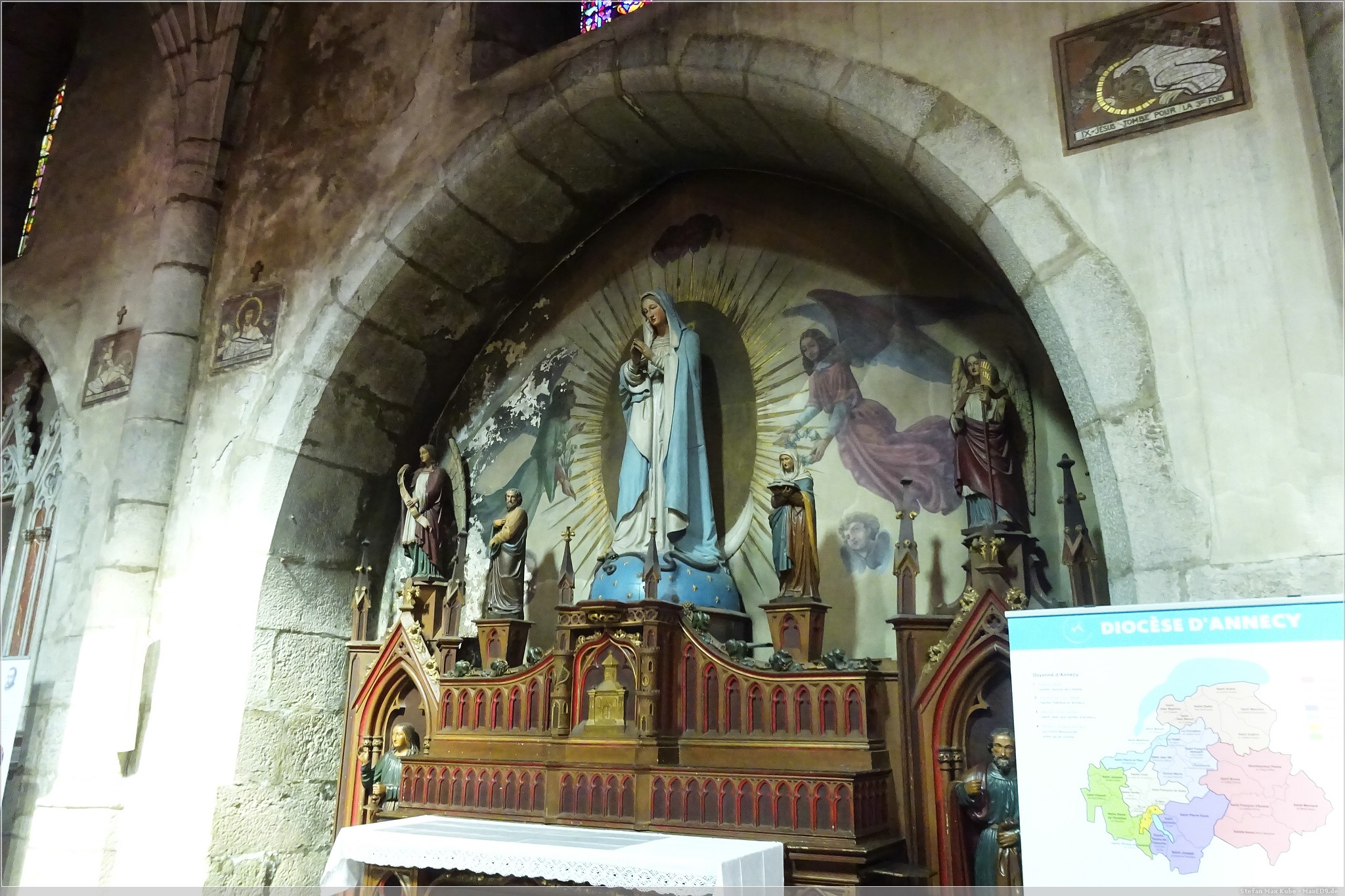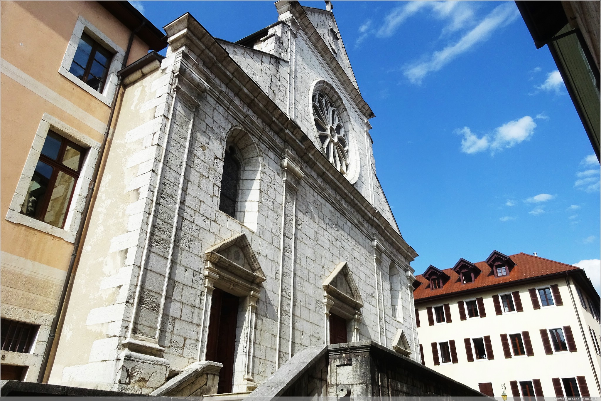 Ein Eis durfte natürlich auch nicht fehlen und in der touristisch orientierten Altstadt gibt es dazu auch unzählige Gelegenheiten. Nach der Aussicht auf den Lac d’Annecy besuchte ich die Kathedrale von Annecy, deren Portal zunächst etwas unscheinbar in einer Gasse auftaucht. Die aus dem 16. Jahrhundert stammende Kirche im gotischen Stil erhielt 1822 den Status einer Kathedrale.