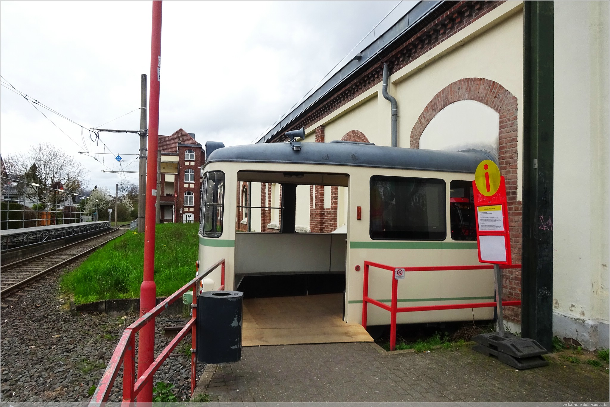 Die Halle befand sich im Umbau, das Museum ist durch eine Gaststätte erreichbar, welche scheinbar täglich offen hat. Die Umgebung ist ruhig, überwiegend Einfamilienhäuser. Der Eingang zur Halle und damit den Bahnsteigen ist ein alter Straßenbahnwagon. Ein witziges Detail.