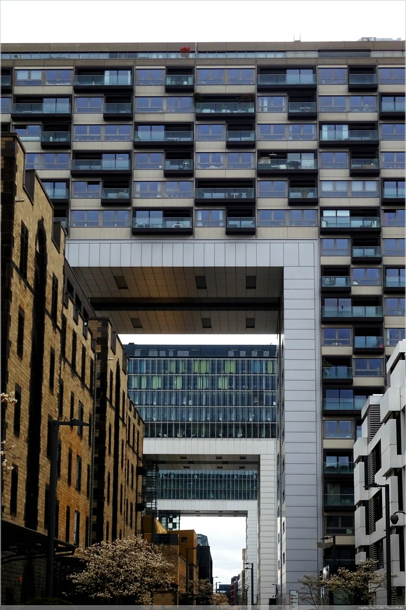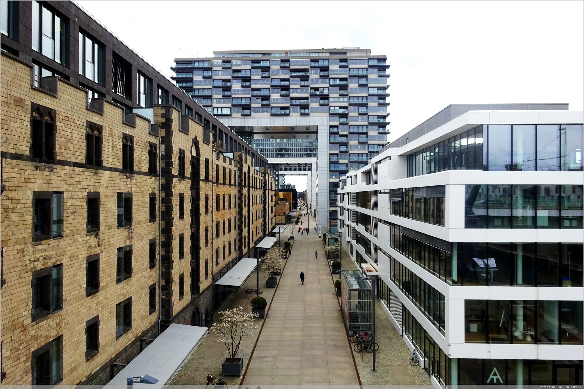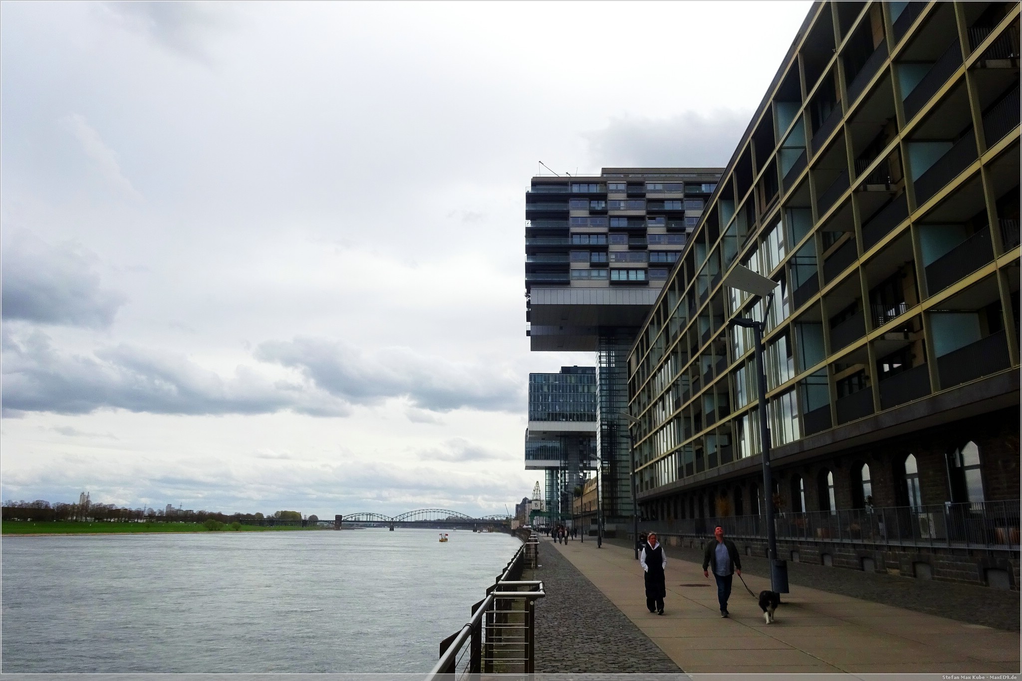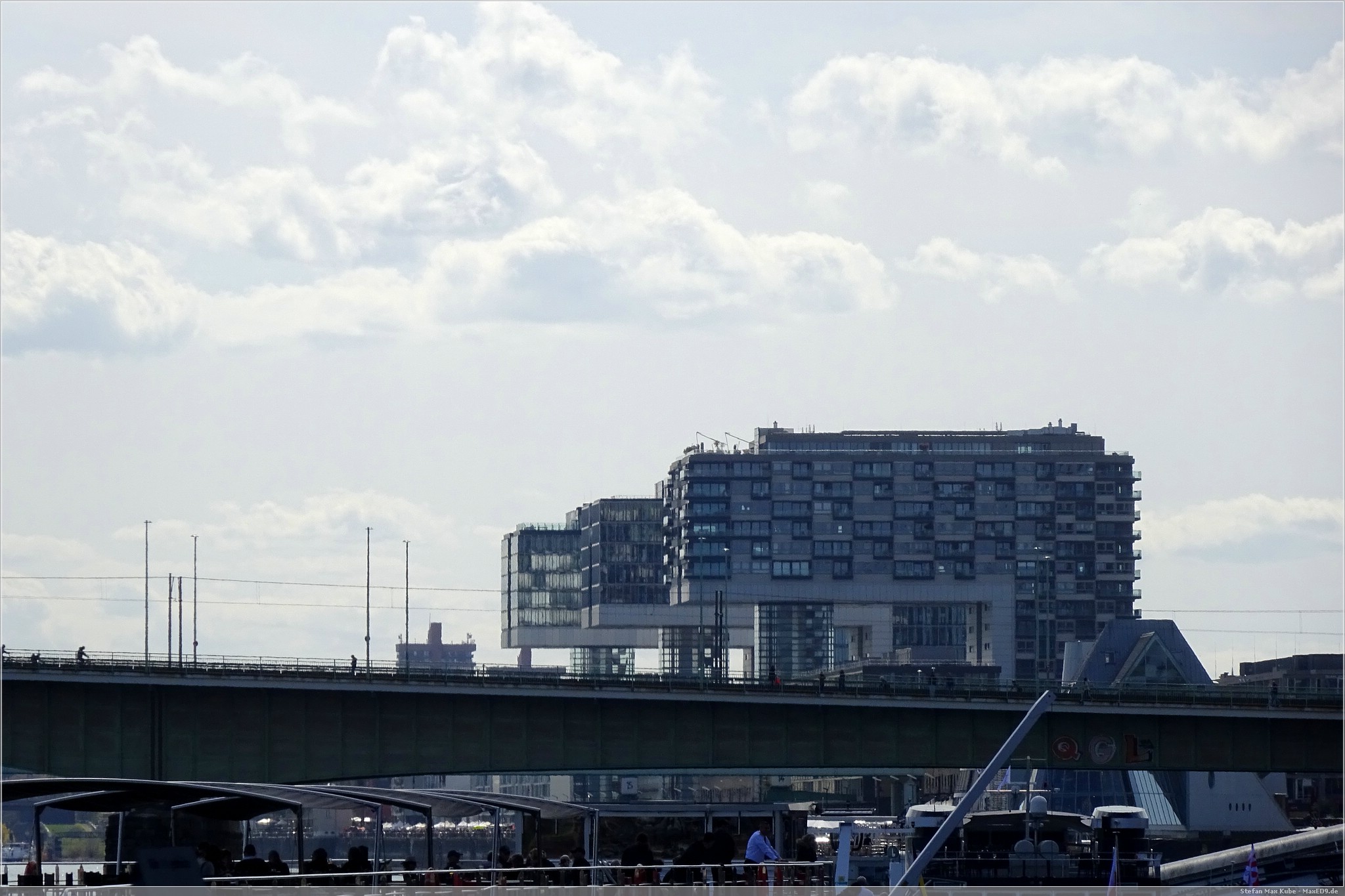 Danach sind wir mit dem Bus zum Rheinauhafen gefahren. Da der Kölner Rheinauhafen seine Funktion als Hafen in den 1970er Jahren verloren hatte, beschloss man das Hafengelände in ein Freizeitgebiet umzuwandeln. Hier stehen auch die bekannten Kranhäuser. Diese drei bis zu fast 62 m hohen Hochhäusern sind alten Ladekränen nachempfunden.